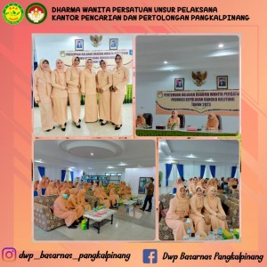 Rabu, 20 September 2023 Dharma Wanita Persatuan Unsur Pelaksana Kantor Pencarian dan Pertolongan Pangkalpinang menghadiri Pertemuan Rutin Bulanan DWP Prov. Kep. Bangka Belitung yang diisi dengan Sosialisasi Literasi Dalam Keluarga oleh Tien Rostini Asraf dan Sosialisasi "Arrum Haji, Amanah Kendaraan, Investasi Logam Mulia oleh Akbar Fitriansyah