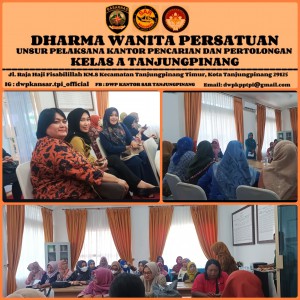 Ketua Dharma Wanita Persatuan Unsur Pelaksana Kantor Pencarian dan Pertolongan Tanjungpinang, Ny. Irma Riyadi beserta anggota menghadiri undangan pertemuan technical meeting DWP Provinsi Kepulauan Riau untuk membahas rangkaian kegiatan sempena merayakan HUT Provinsi Kepulauan Riau yang ke 21 bertempat di Sekretariat PKK Provinsi Kepri.