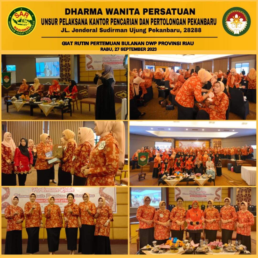Rabu, 27 September 2023. Ketua DWP UP KPP Pekanbaru, Ny. Siska Budi Cahyadi beserta Pengurus dan anggota menghadiri kegiatan rutin pertemuan bulanan DWP Provinsi Riau Yang bertema Beauty Class Make Up Harian dengan Narasumber Ny. Lisa Bonet dan juga di adakan lomba Make Up Harian untuk anggota DWP UP SKPD se - Provinsi Riau. Dalam pertemuan bulanan ini DWP UP KPP Pekanbaru bersama dengan DWP UP Disperindag, DWP UP Diskominfo dan DWP UP Disparpora menjadi panitia pelaksana acara. Acara berjalan dengan lancar dan giat ditutup dengan foto bersama.