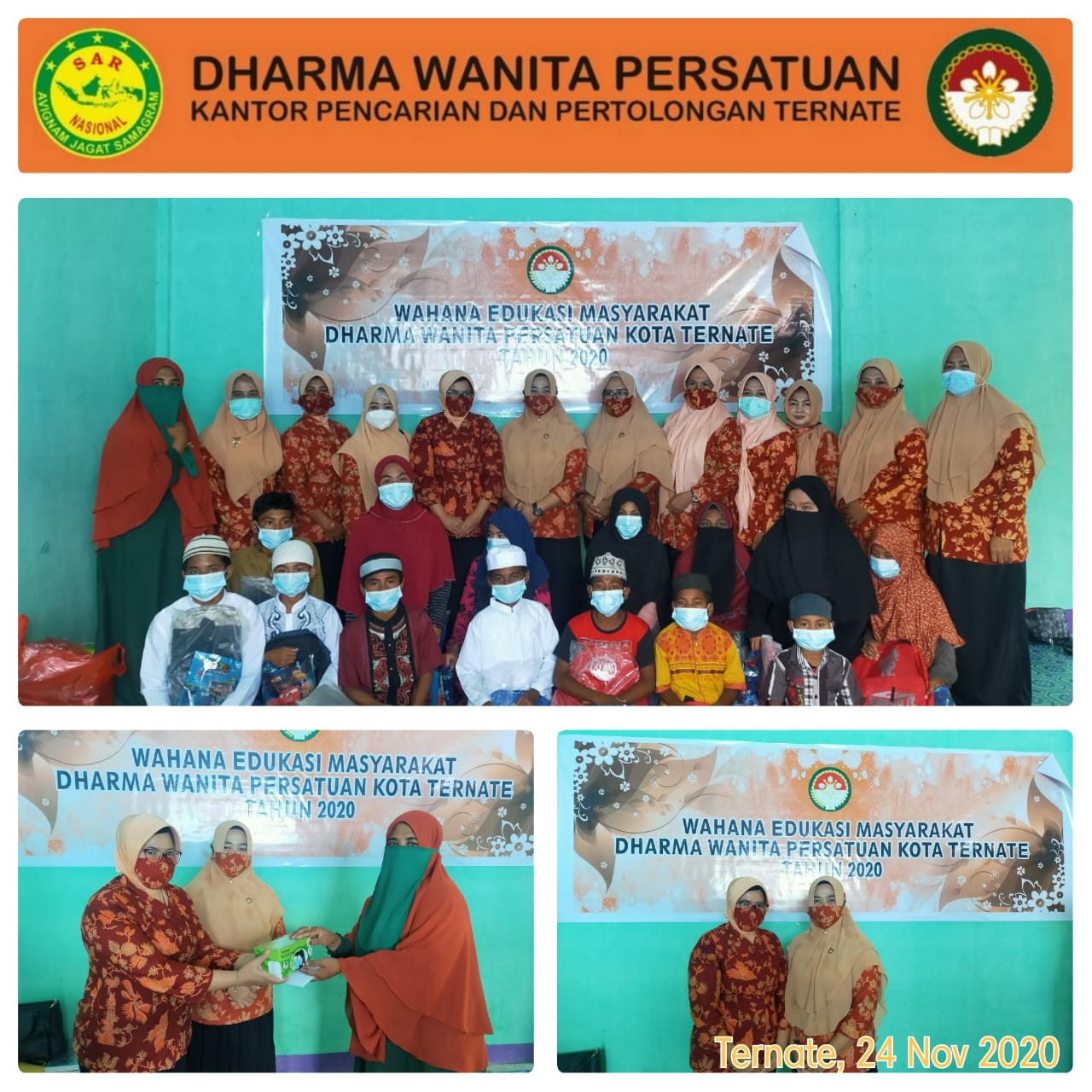 Tanggal 24 November 2020 DWP Kantor Pencarian dan Pertolongan Ternate, menghadiri undangan DWP Kota untuk melakukan kunjungan dan penyerahan bantuan sosial ke Panti Asuhan Nurul Fajri dalam rangka HUT DWP ke 21.