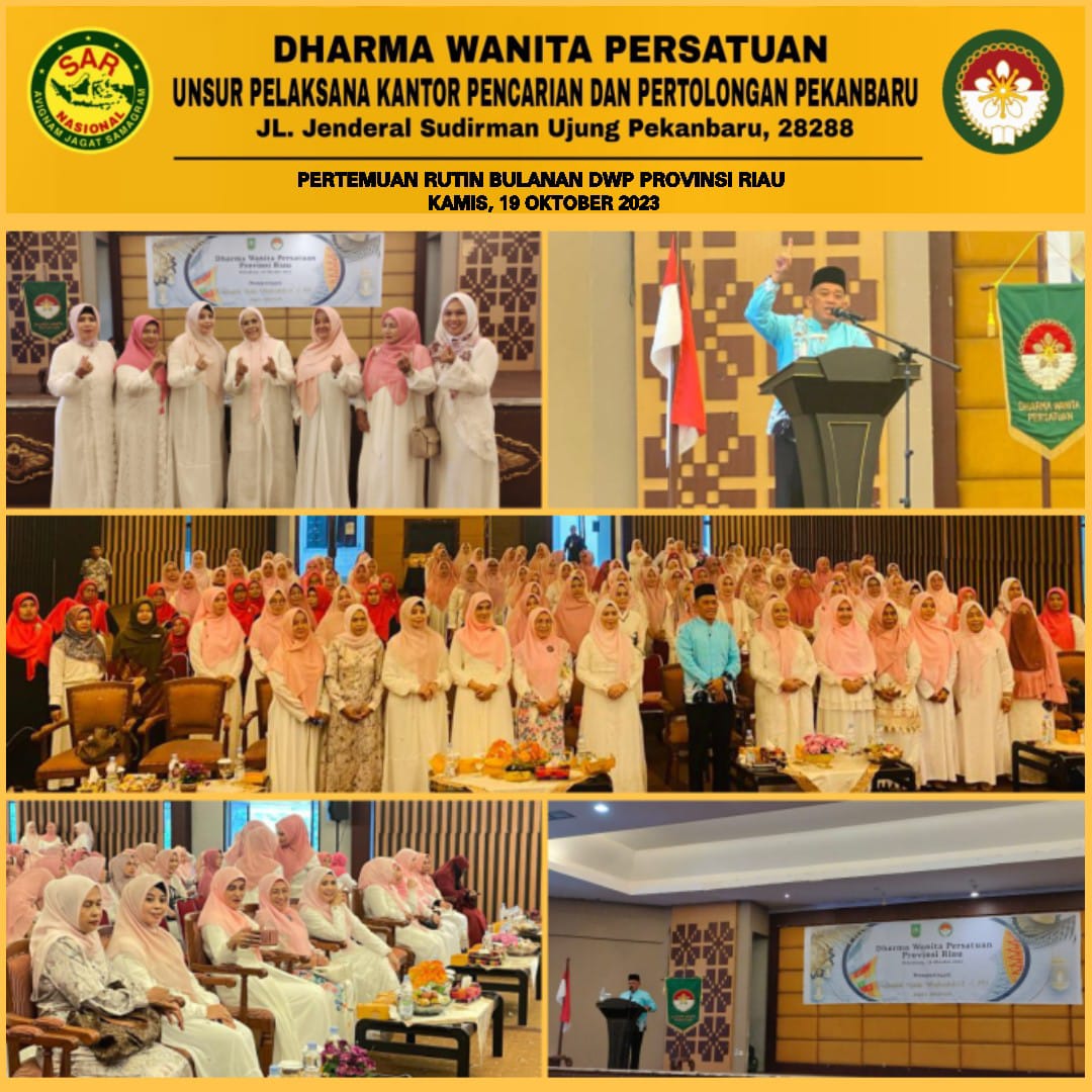 Kamis, 19 Oktober 2023. Ketua DWP UP KPP Pekanbaru, Ny. Siska Budi Cahyadi beserta anggota DWP UP KPP Pekanbaru mengikuti Pertemuan Rutin Bulanan DWP Provinsi Riau dengan tema Peringatan Maulid Nabi Muhammad SAW 1444 H. Narasumber Ustadz H. Yurnalis, S. Ag Bertempat di Aula gedung wanita lantai 2 DWP Provinsi Riau.