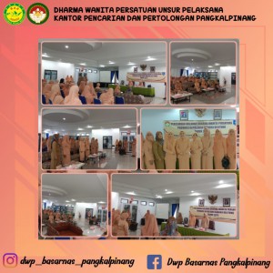 Selasa, 24 Oktober 2023 Dharma Wanita Persatuan Unsur Pelaksana Kantor Pencarian dan Pertolongan Pangkalpinang menghadiri Pertemuan Rutin Bulanan DWP Provinsi Kep. Bangka Belitung yang diisi dengan kegiatan arisan dan "Sosialisai Meningkatkan Ketahanan Pangan di Keluarga" oleh Ibu Sulastri, SP .,MM Kabid Ketahanan Pangan DPKP Prov. Kep. Bangka Belitung