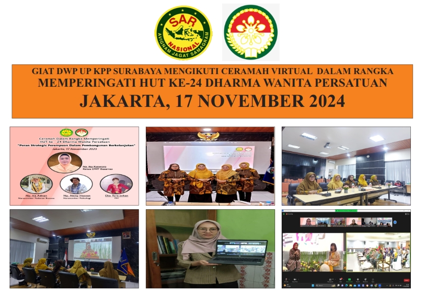 Ketua DWP UP KPP Surabaya bersama pengurus dan anggota mengikuti ceramah virtual dalam rangka memperingati HUT ke-24 Dharma Wanita Persatuan