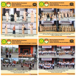 Jum'at, 0812-2023. DWP UP KPP Lampung melaksnakan rangkaiaan Lombah dalam rangkah merayakan HUT DWP ke 24 yang dilaksanakan di kantor Basarnas Lampung yang diikuti oleh 45 anggota.