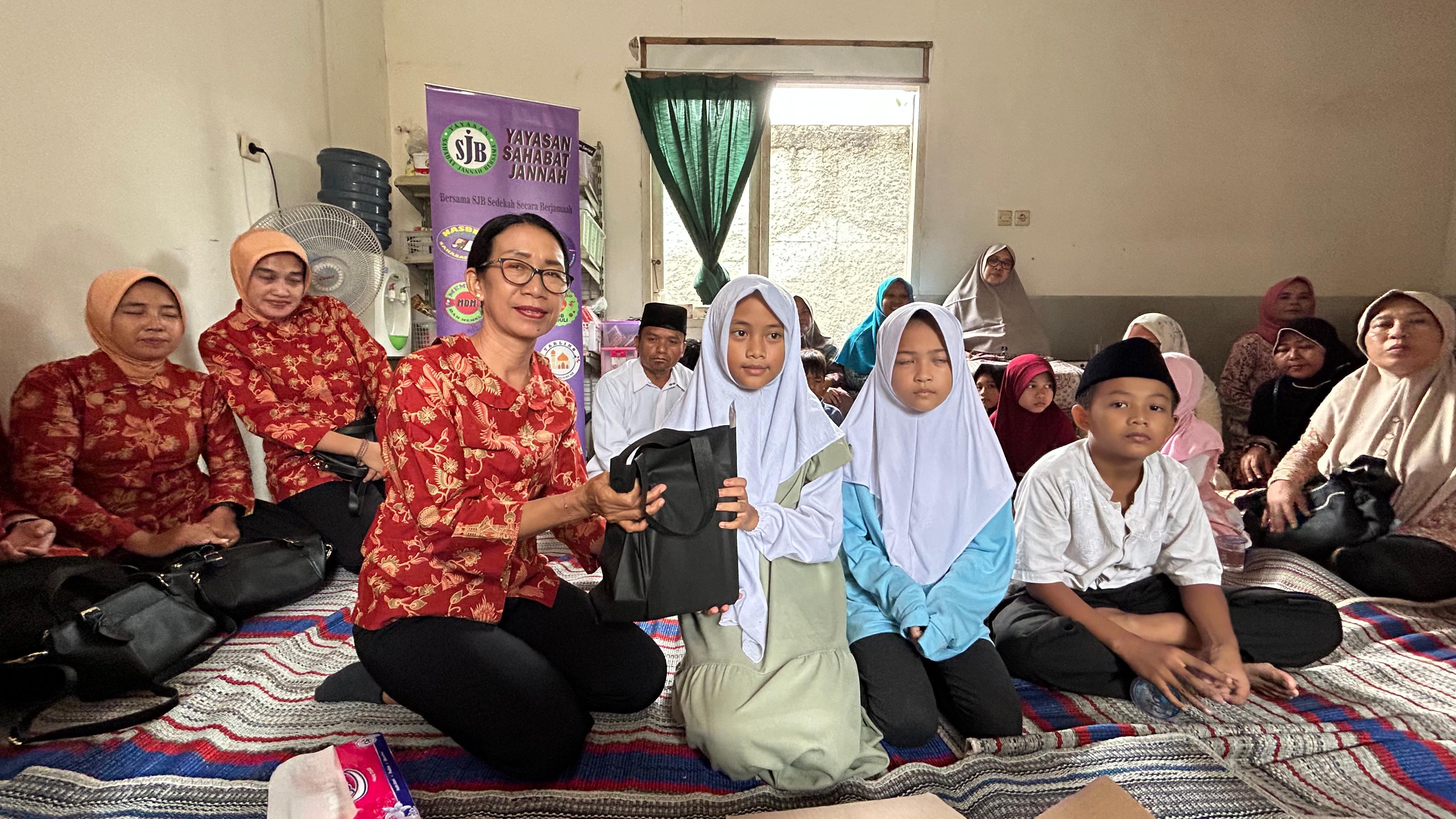 Ketua DWP UP Balai Pelatihan Sumber Daya Manusia BASARNAS, Ny. Pika Gede Darmada bersama pengurus dan anggota melaksanakan kegiatan Bakti sosial ke Yayasan Sahabat Jannah di daerah citra jonggol dalam rangka HUT DWP ke – 24.
