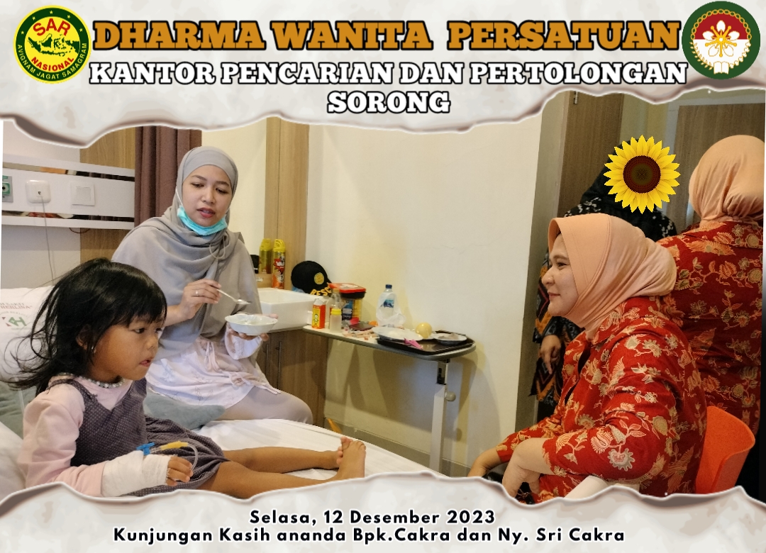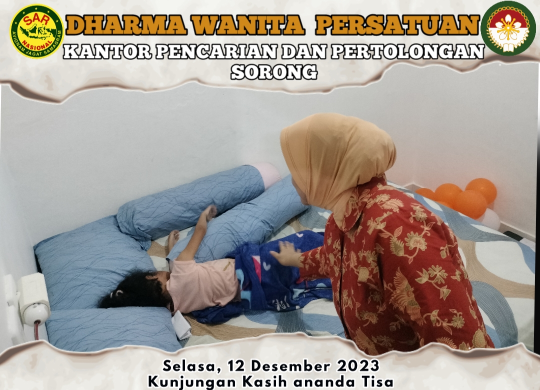 Pada hari Selasa, 12 Desember 2023.Ketua DWP UP KPP Sorong Ny. Yenny Amiruddin bersama beberapa Anggota Menjenguk Anak Anggota yang sedang sakit yaitu Ny. Sri Cakra dan Ny. Ula Hendry.Diikuti 7 orang anggota