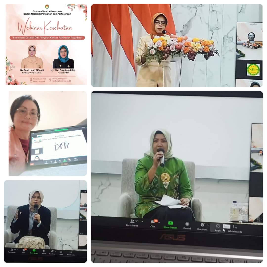 21/Juni/2023/Rabu Ketua Dwp Up Kantor Pencarian Dan Pertolongan Pontianak Ny.Rasmini Junetra Beserta Anggota Mengikuti Webinar Mengikuti Kesehatan "Sosialisasi Deteksi Dini Penyakit Kanker Rahim Dan Payudara Secara Virtual Yang Diselenggarakan Oleh Dwp Pusat Basarnas