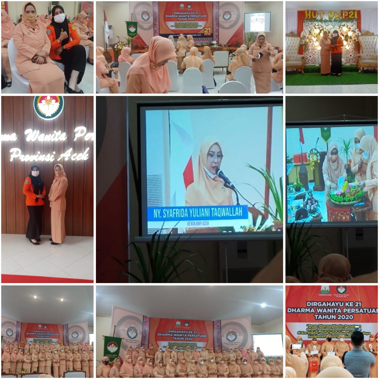Pada tanggal 10 Desember 2020, Wakil Ketua DWP UP KPP Banda Aceh mengikuti Puncak Acara Peringatan HUT Dharma Wanita Persatuan ke 21 di Aula Gedung Dharma Wanita Persatuan Banda Aceh