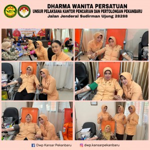 Kamis, 22 Februari 2024. Ketua DWP UP KPP Pekanbaru, Ny. Siska Budi Cahyadi dan anggota mengikuti kegiatan Donor Darah dalam rangka HUT Basarnas yang ke-52 tahun 2024 yang diadakan oleh Kantor Pencarian dan Pertolongan Pekanbaru. Bertempat di aula serbaguna Kantor Pencarian dan Pertolongan Pekanbaru.