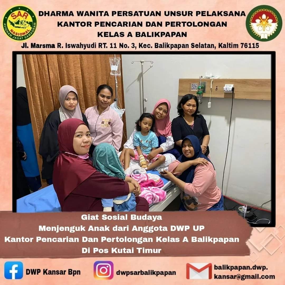 Pada tanggal 26 Februari 2024 DWP UP Kantor Pencarian dan Pertolongan Balikpapan POS SAR Sangatta menjenguk anak Bapak Joko Triwulan Rescuer POS SAR Sangatta yg sedang sakit dirawat di Rumah Sakit.