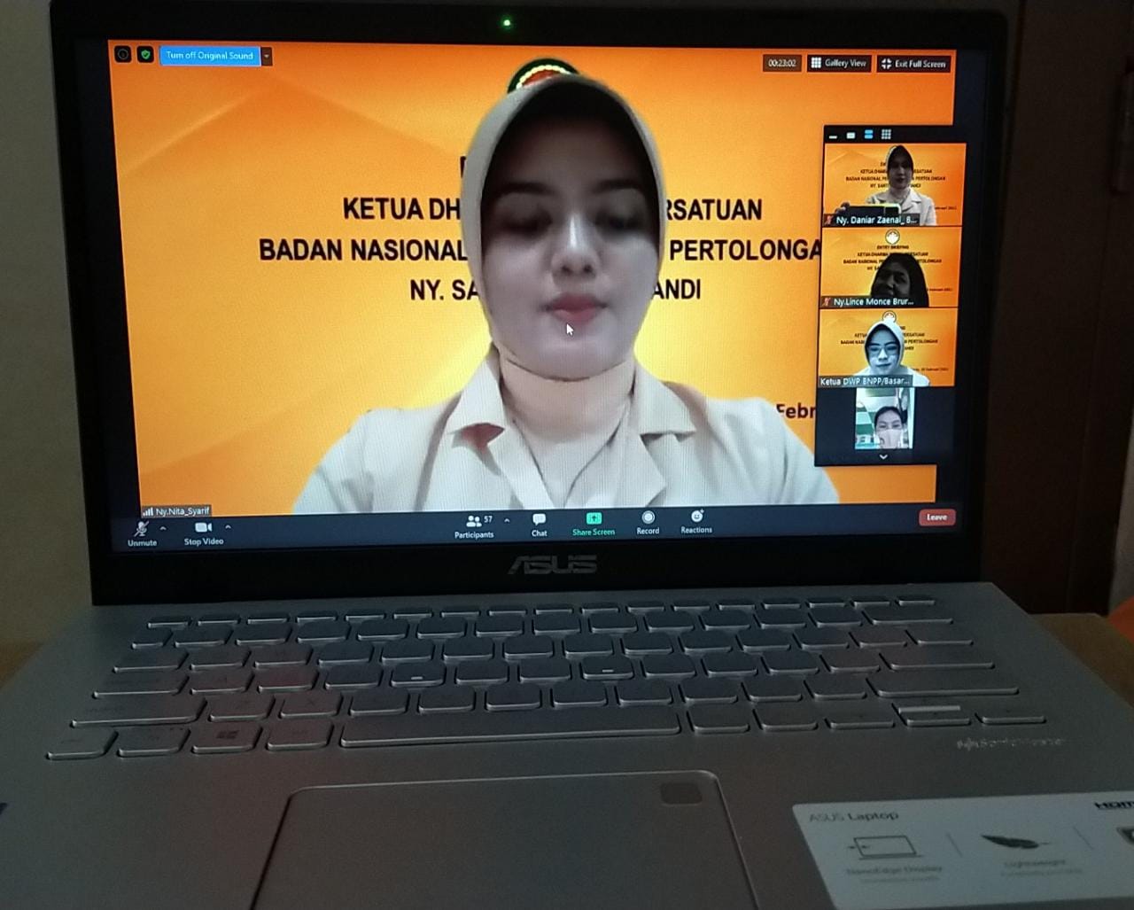 Ibu ketua DWP up kkp jambi mengikuti entry briefing bersama ketua Dharma Persatuan Wanita Badan Nasional Pencarian dan Pertolongan Ny. Santi Henri Alfiandi. diikuti 1 orang.