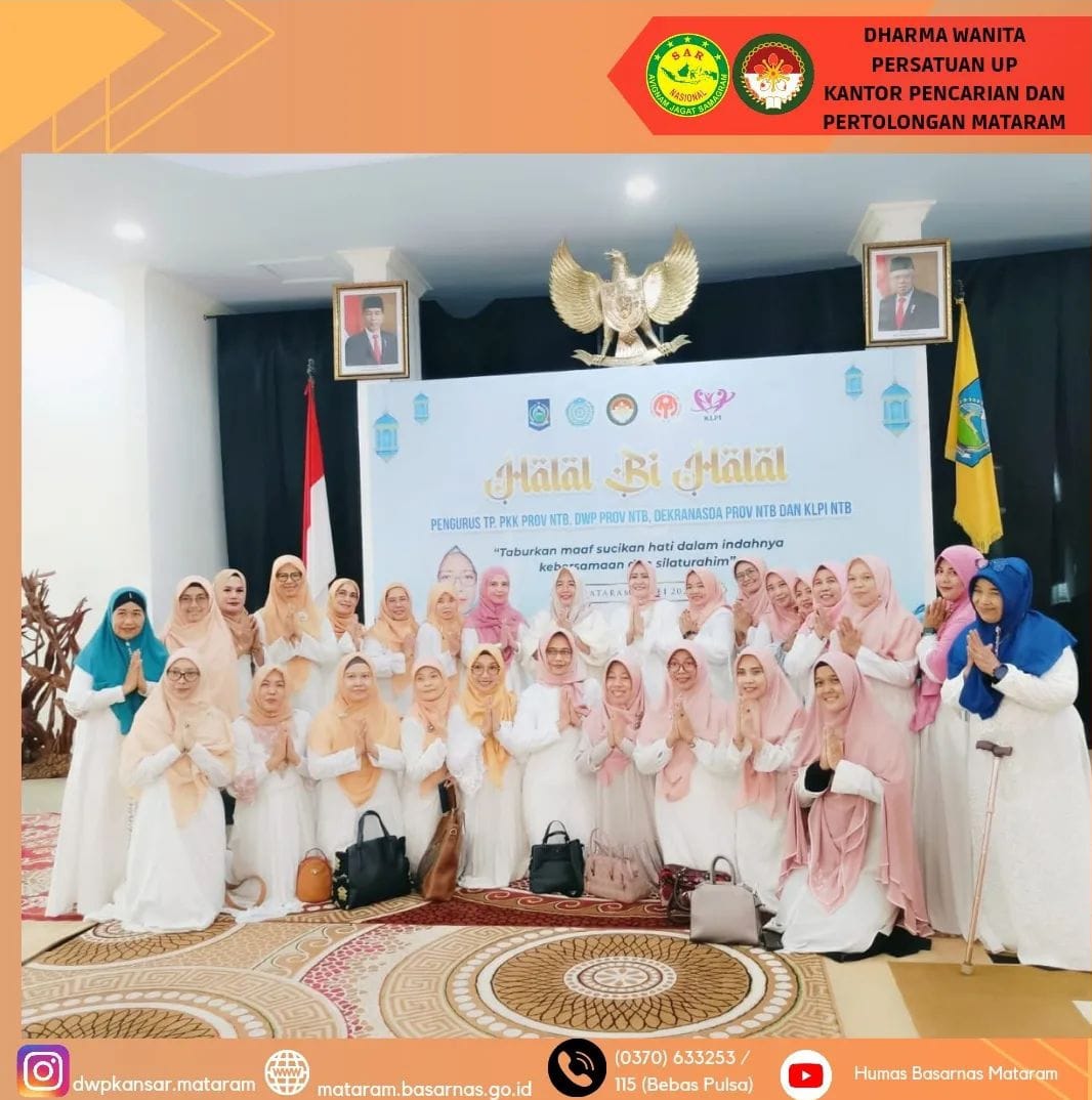 Pada tanggal 03 Mei 2024 Ketua DWP UP Kantor Pencariuan dan Pertolongan Mataram menghadiri Acara Halal Bi Halal bersama DWP Provinsi NTB bertempat di Pendopo Tengah Kantor Gubernur NTB