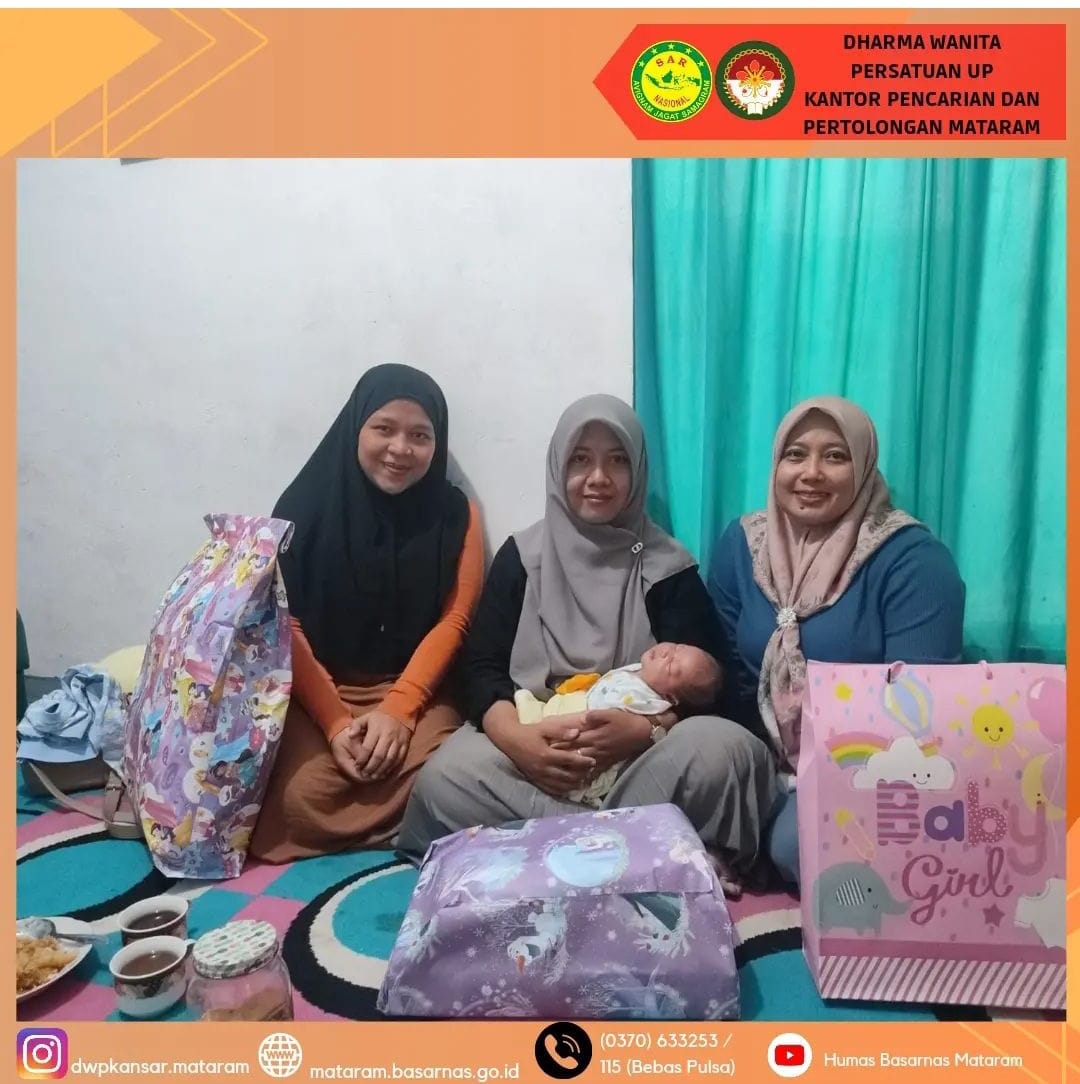 Pada tanggal 24 Mei 2024, 2 orang anggota DWP UP Kantor Pencarian dan Pertolongan Mataram mengunjungi Ny Urip Zarkawi Pasca melahirkan bertempat di Kediamannya Lombok Timur