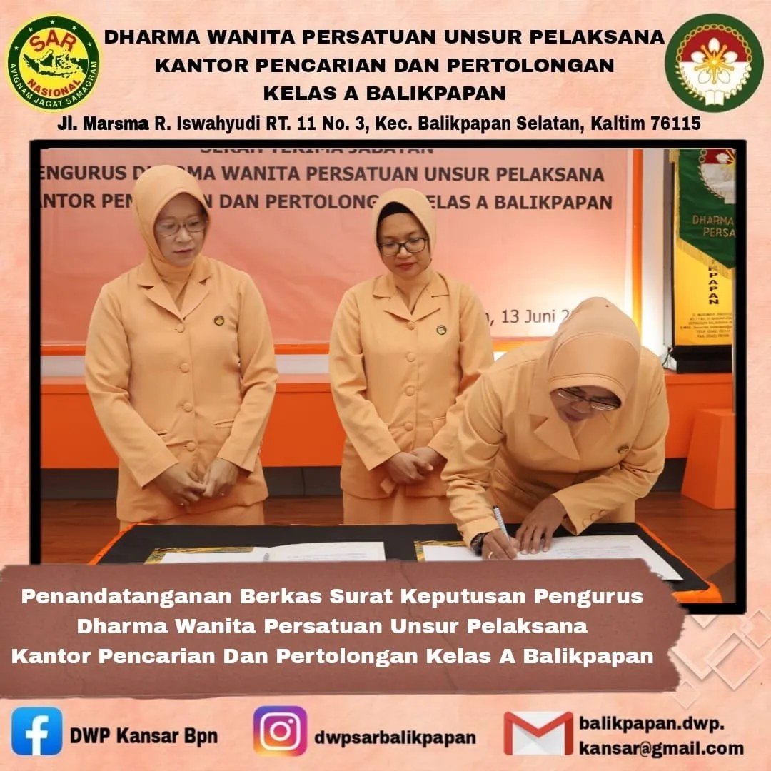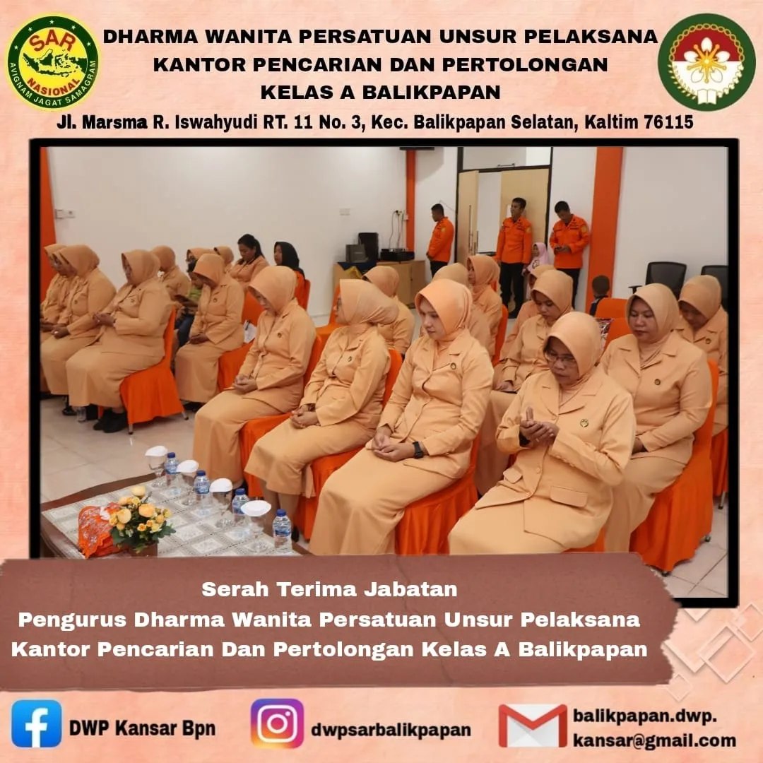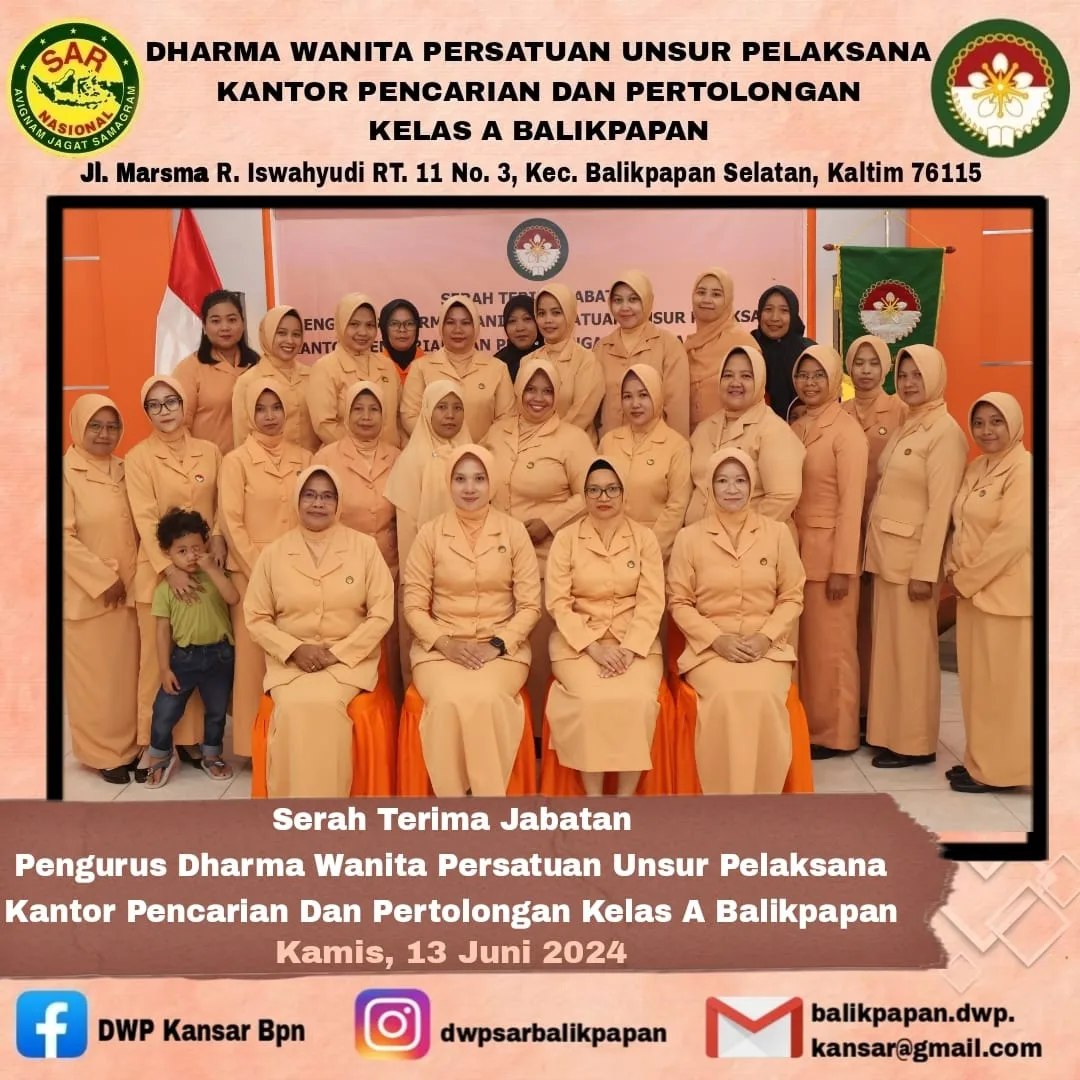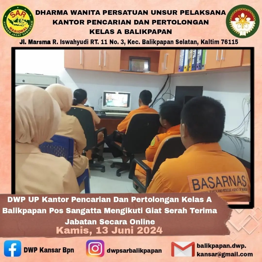 Kamis, 13 Juni 2024 DWP UP Kantor Pencarian dan Pertolongan Kelas A Balikpapan mengikuti serah terima jabatan Kepala Seksi Sumber Daya dan Kepala Seksi Operasi Kantor Pencarian dan Pertolongan Kelas A Balikpapan. Acara dilanjutkan dengan serah terima jabatan antar waktu DWP UP Kantor Pencarian dan Pertolongan Kelas A Balikpapan