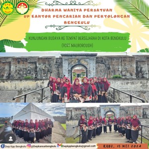 Rabu, 15 Mei 2024 Ny. Rosna Muslikun Sodik selaku Ketua Dharma Wanita Persatuan Unsur Pelaksana Kantor Pencarian dan Pertolongan Bengkulu beserta pengurus dan anggota melaksanakan giat kunjungan budaya tempat bersejarah di Kota Bengkulu “ Fort Malborough “