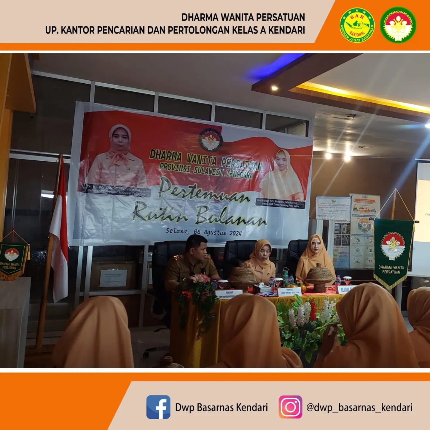 Selasa, 06 Agustus 2024 Pengurus DWP UP Kantor Pencarian dan Pertolongan Kendari bersama anggota menghadiri pertemuan rutin bulanan DWP Provinsi Sulawesi Tenggara yang berlangsung di Kantor Dinas Perindustrian dan Perdagangan Provinsi Sulawesi Tenggara