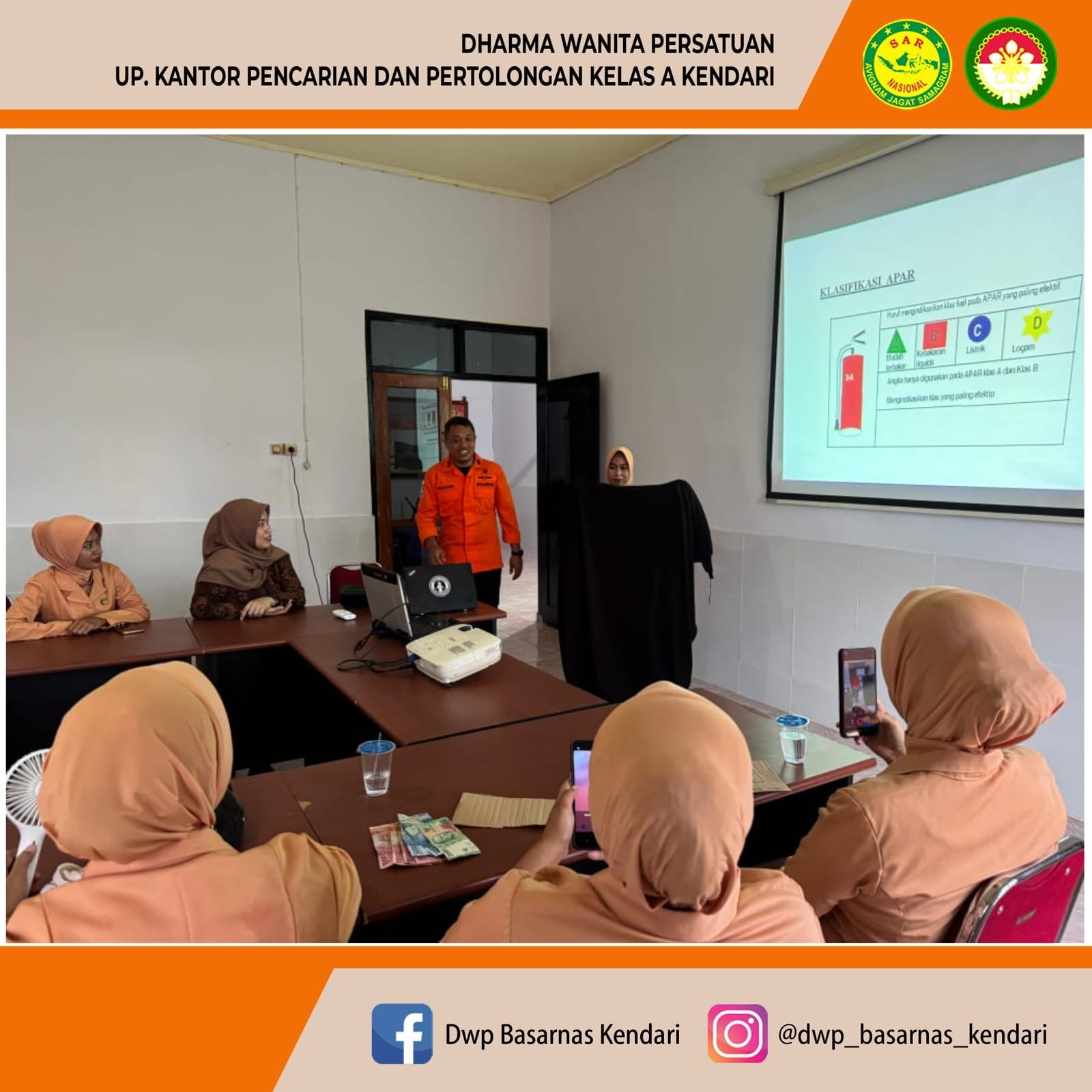 DWP Pos SAR Kolaka, Kantor Pencarian dan Pertolongan Kendari melaksanakan Pertemuan Rutin yang di isi dengan Materi "Berbagi Pengetahuan Dan Tehnik Pemadaman Api" yang dibawakan oleh salah satu Rescuer Pos SAR bapak Muh.Hasrul.