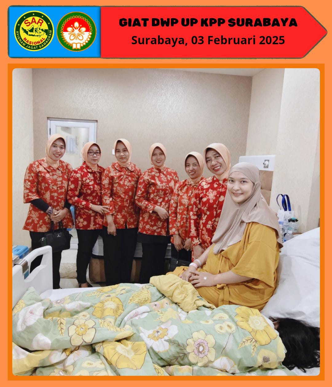 Senin, 3 Februari 2025 Bertempat di RSIA Kendangsari Surabaya, Ketua DWP UP KPP Surabaya, Ny. Yuliani Haryadi bersama pengurus melakukan kunjungan sosial serta memberikan tali asih kepada Ny. Renyy Ebtario setelah melahirkan anak ke 3. Diiringi do'a semoga anak dan ibu sehat selalu senantiasa dalam lindungan Allah SWT.