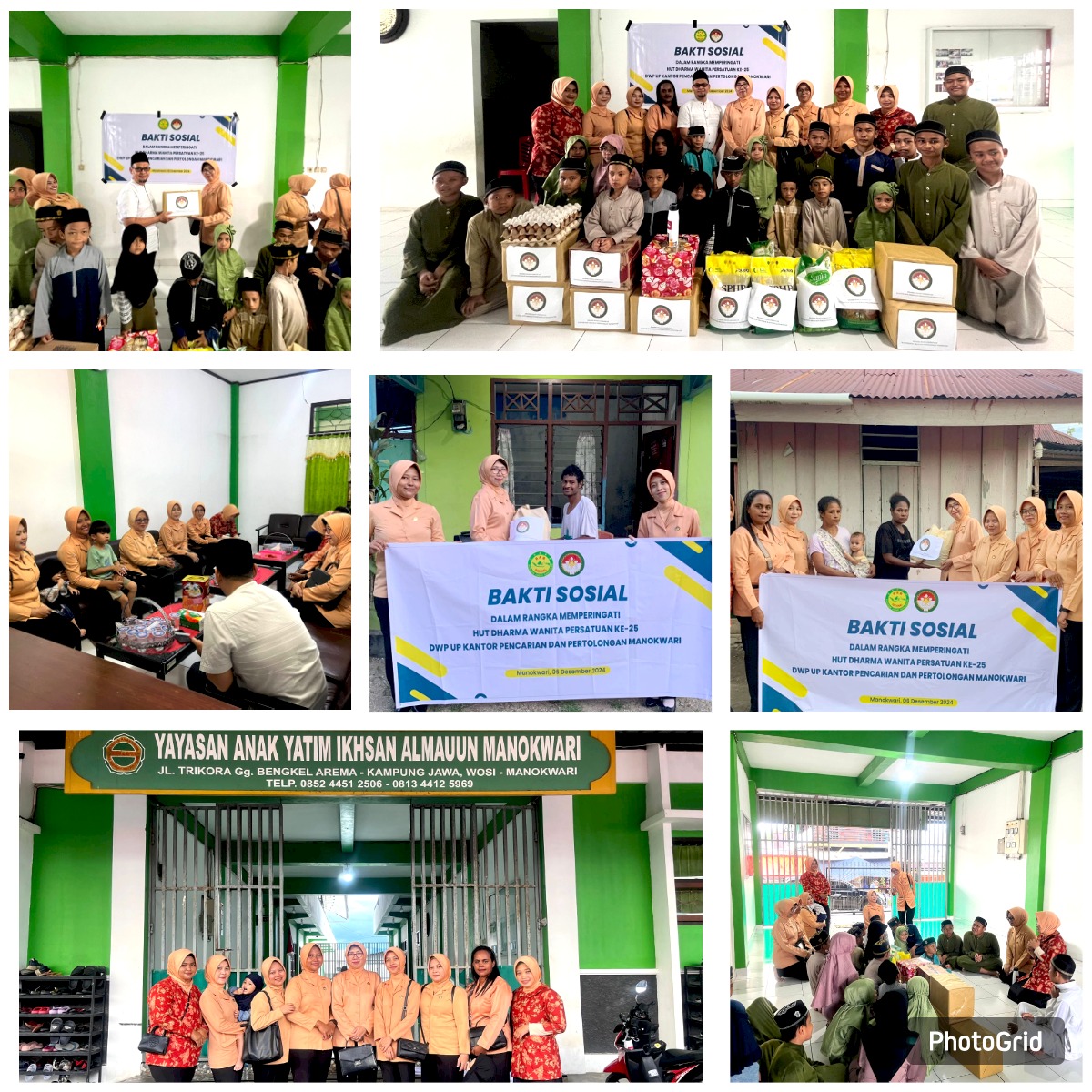 Jumat, 06 Desember 2024 DWP UP Kantor Pencarian dan Pertolongan Manokwari mengadakan Bakti Sosial ke Yayasan Anak Yatim Ikhsan Al-Maun dan mengunjungi kediaman Ibu-Ibu Janda dan yang membutuhkan di sekitaran Cokran Sowi. Kegiatan ini dilaksanakan dalam rangka memperingati HUT Dharma Wanita Persatuan ke 25.