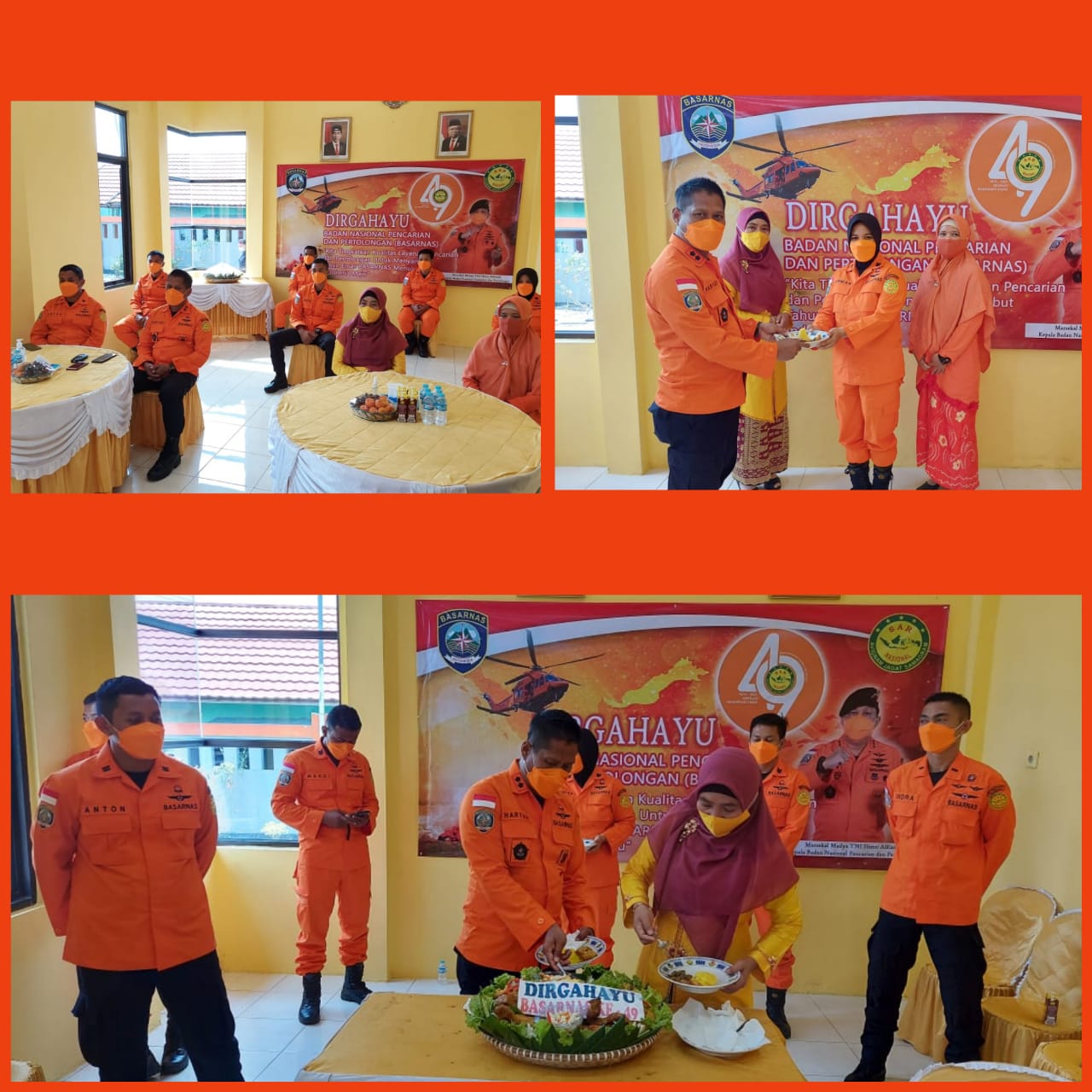 Tanggal 28 februari 2021 rangkaian acara ulang tahun Basarnas Yang ke 49 Ketua DWP UP Kantor Pencarian dan Pertolongan bersama Kepala Kantor Pencarian dan Pertolongan melaksanakan Pemotongan Tumpeng yang di ikuti oleh anggota.