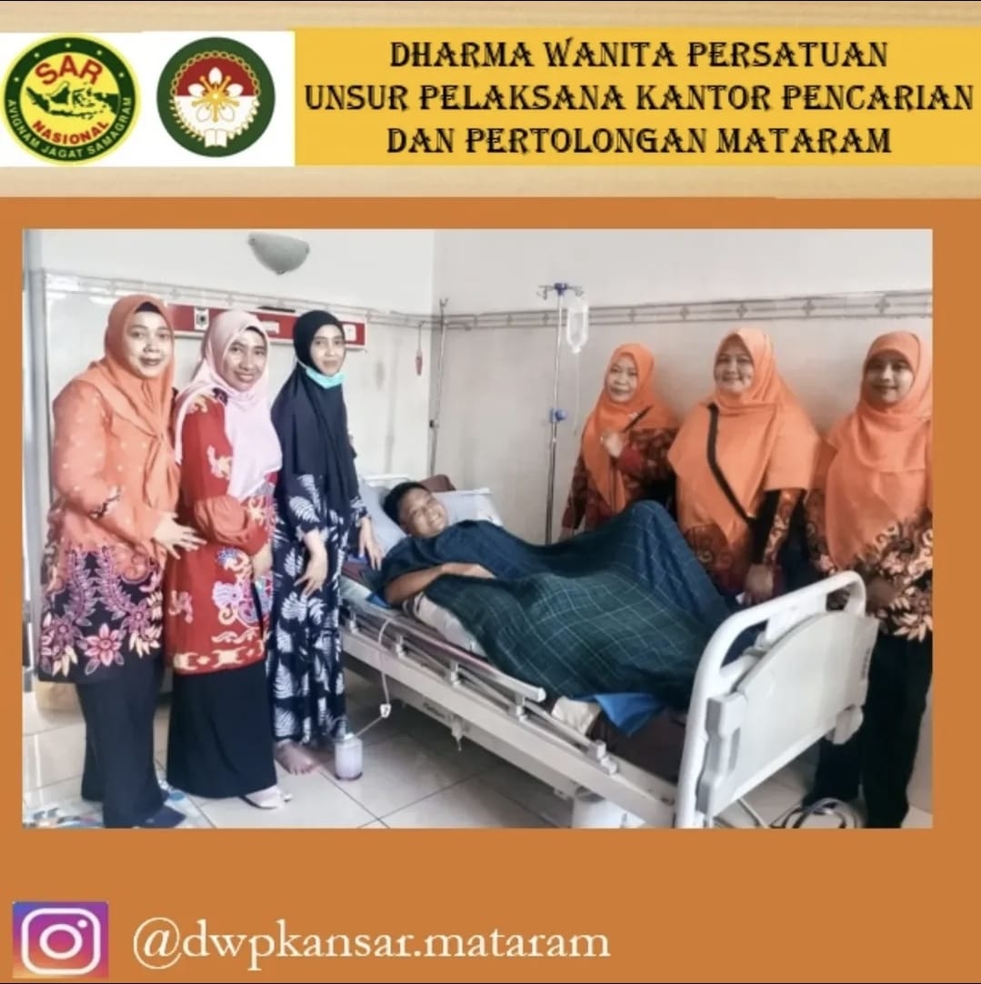 Pada tanggal 03 Maret 2024, Ketua DWP UP kantor Pencarian dan Pertolongan Mataram Ny Yuliani Hariyadi bersama 4 orang anggota membesuk salah satu orang Pegawai Kantor Pencarian dan Pertolongan Matara Bapak Alfin Mardawaih yang dirawat di Rumah Sakit Islam Mataram