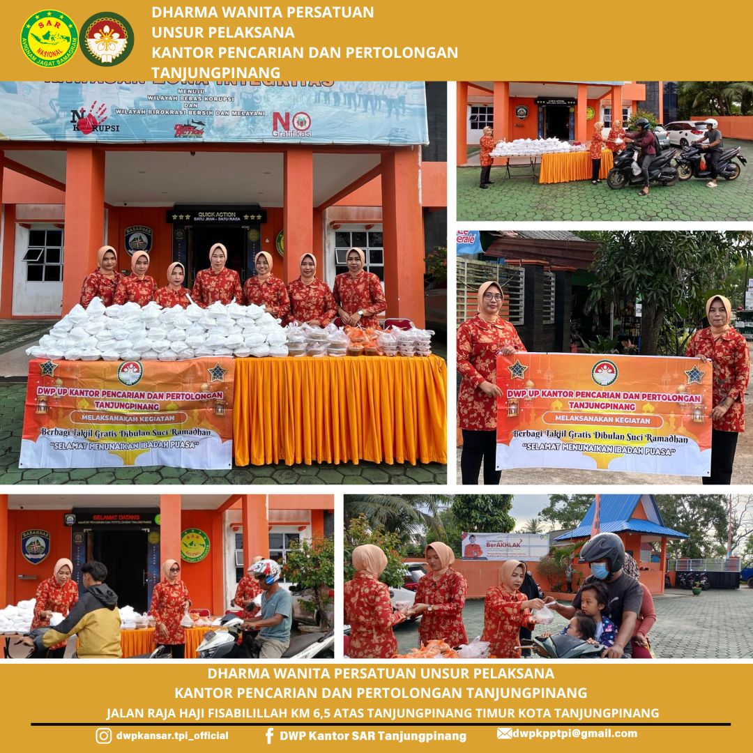 Hari ini , Jumat, 07 Maret 2025, Dharma Wanita Persatuan Unsur Pelaksana Kantor Pencarian Dan Pertolongan Tanjungpinang Melaksanakan Kegiatan Ramadhan Berbagi Takjil Gratis Pada Minggu Pertama Puasa. Adapun Kegiatan ini diikuti oleh Anggota DWP UP serta Pegawai Kantor Pencarian dan Pertolongan Tanjungpinang.