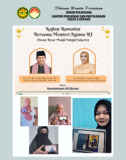 Plt. Ketua DWP UP Kantor Pencarian dan Pertolongan Kupang Ny.Ratna Muhdar bersama anggota DWP SAR Unit siaga ( Pos SAR Atambua) Ny.Hasmiati Harman, Ny. Nistiawan dan Ny.Yoka M Teddi, mengikuti kegiatan ngabuburit bareng DWP dengan Tema Keutamaan Al- Qur'an di laksanakan secara daring melalui zoom dan live streaming YouTube. Kajian Ramadhan yang di selenggarakan bersama Menteri Agama RI ( Imam Besar Masjid Istiqlal Jakarta) Bapak Prof.Dr.KH. Nasaruddin MA dan serta Ketua Dharma wanita Persatuan Ibu Ida Budi Gunadi Sadikin.