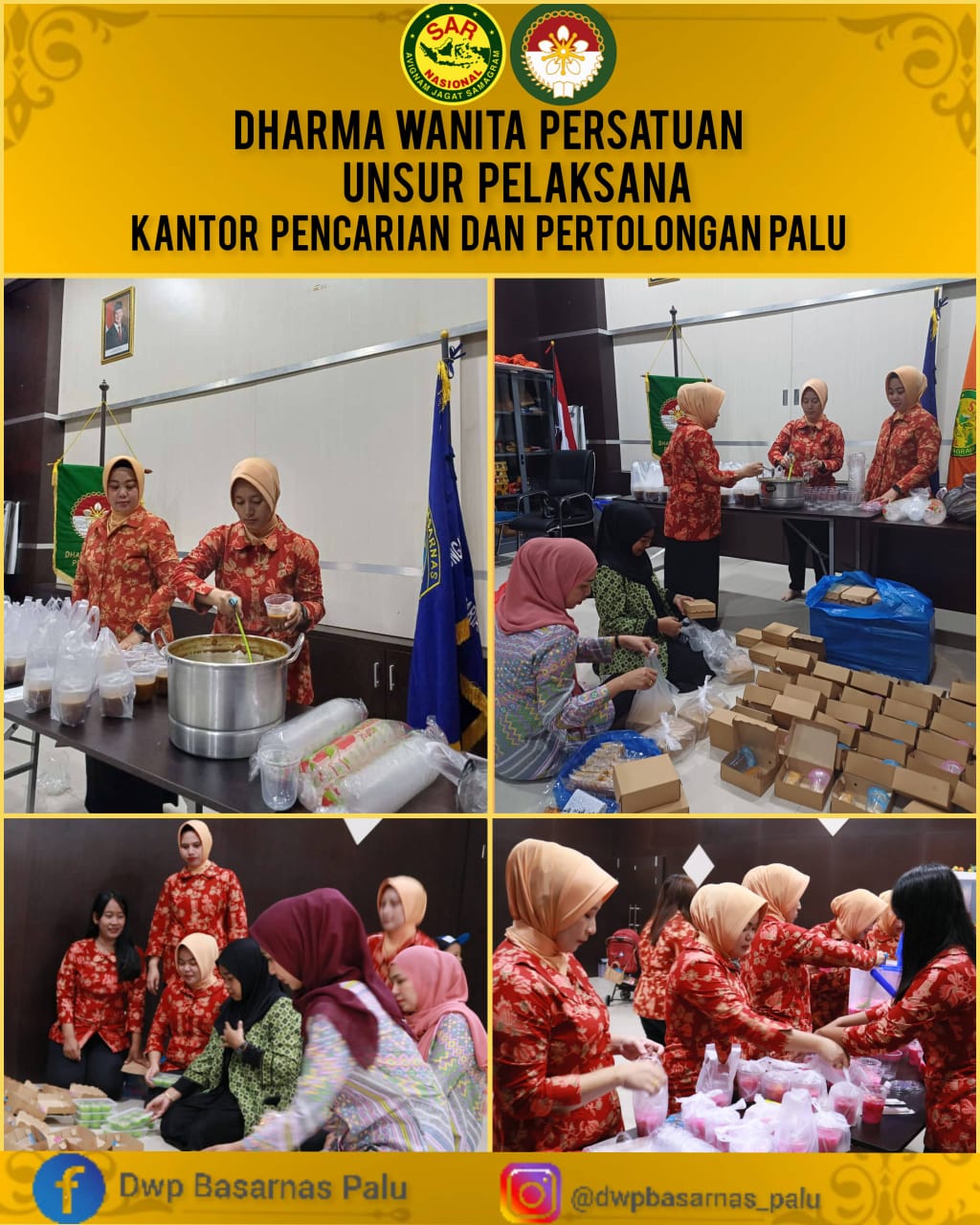 Giat. Sabtu 15 Maret 2025. Dharma Wanita Persatuan Unsur Pelaksana Kantor Pencarian dan Pertolongan Palu pada Bidang Ekonomi melaksanakan kegiatan "Menyiapkan Makanan dan Takjil" untuk Giat Berbagi Pada Bulan Ramadhan 1446H". Kegiatan ini dilaksanakan di hari ke-15 Ramadhan bertempat di Ruang Rapat Lat. 1 KPP Palu. Adapun beberapa aneka makanan dan jajanan pasar yg disiapkan, antara Lain : 1. Nasi Kotak 2. Aneka Jajanan Pasar 3. Sop Buah 4. Kolak Pisang 5. Burjo Beberapa Makanan dan Jajanan pasar, di beli dari Usaha Ibu- ibu DWP Up KPP Palu.