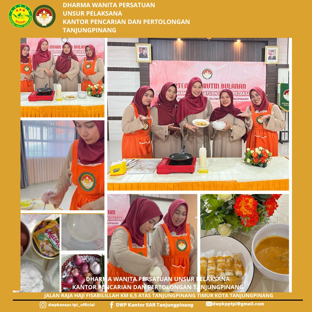 Minggu, 13 April 2025 , Ketua Dharma Wanita Persatuan Unsur Pelaksana Kantor Pencarian Dan Pertolongan Tanjungpinang Ny. Pipit Fazzli Beserta Pengurus dan Anggota Mengadakan Pertemuan Rutin Bulanan yang diisi dengan Demo Membuat Roti Kirai (Roti Jale) oleh Bidang Pendidikan, di Aula Kantor Pencarian dan Pertolongan Tanjungpinang.
