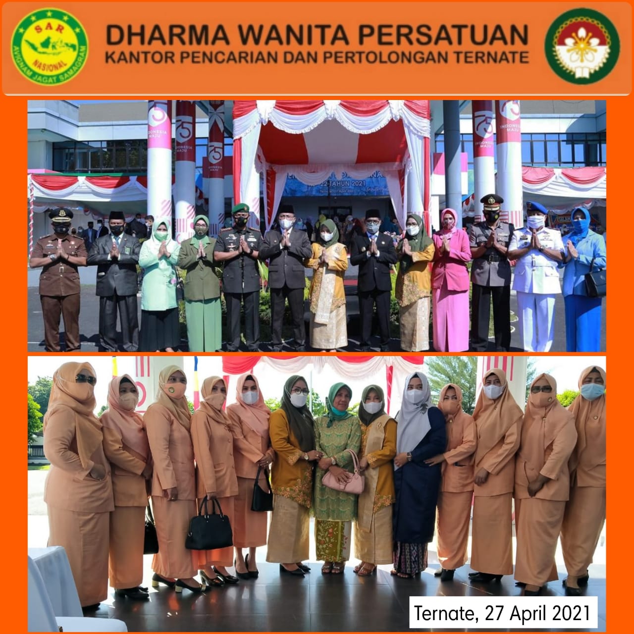 Tanggal 27 April 2021 DWP UP Kantor Pencarian dan Pertolongan Ternate menghadiri Upacara dalam rangka HUT Pemerinta Kota Ternate yang ke -22 dan Hari Otonomi Daerah ke- 25 tahun 2021 yang bertempat di Kantor Walikota Ternate