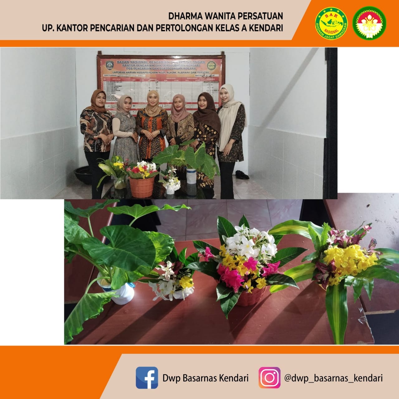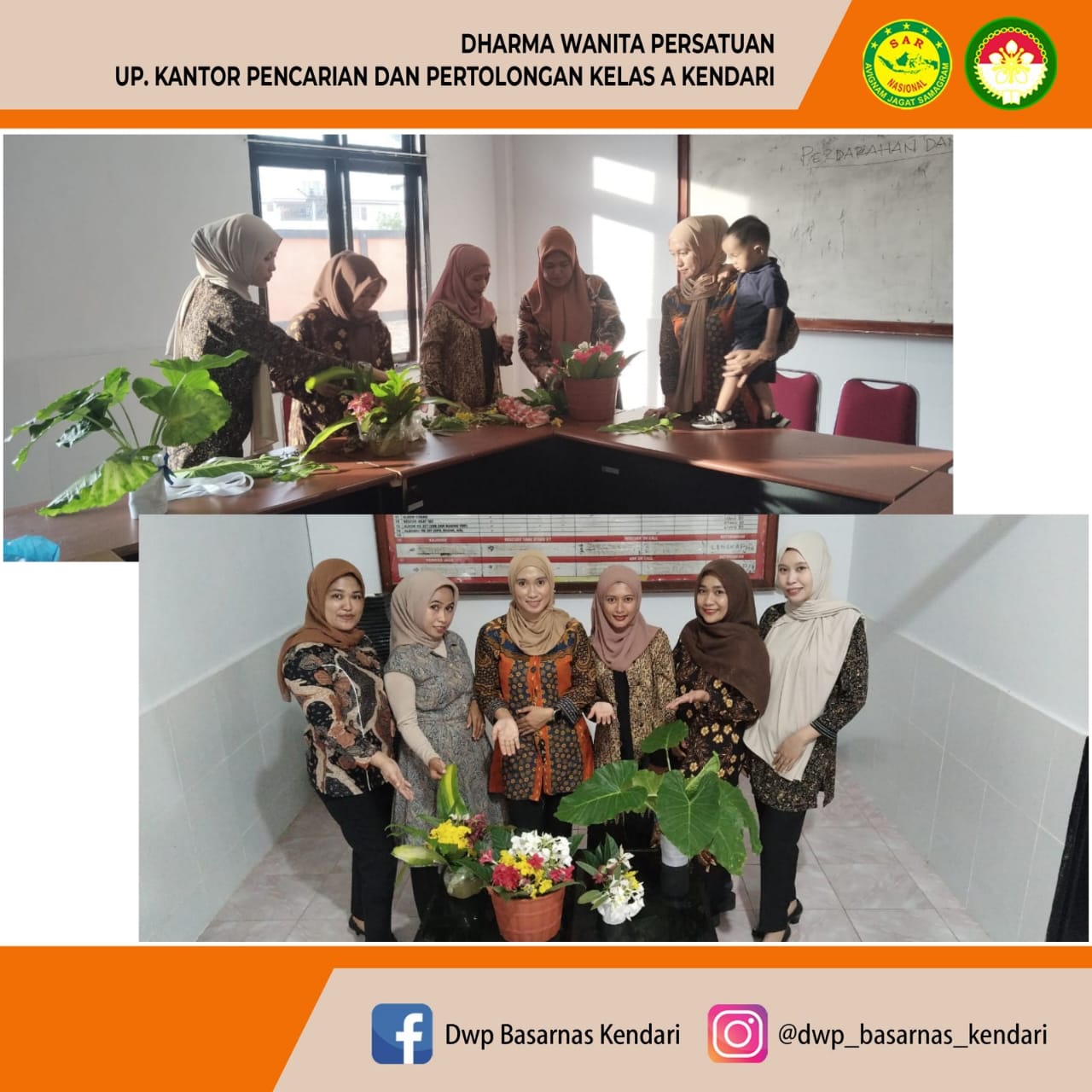 Pertemuan Rutin DWP Pos SAR Kolaka, Kantor Pencarian Dan Pertolongan Kendari Yang di isi dengan Materi "Tehnik Merangkai Bunga Hidup", Materi pertemuan di Bawakan Oleh Salah Satu Anggota DWP dan Kegiatan ini di Laksanakan di Pos SAR Kolaka.