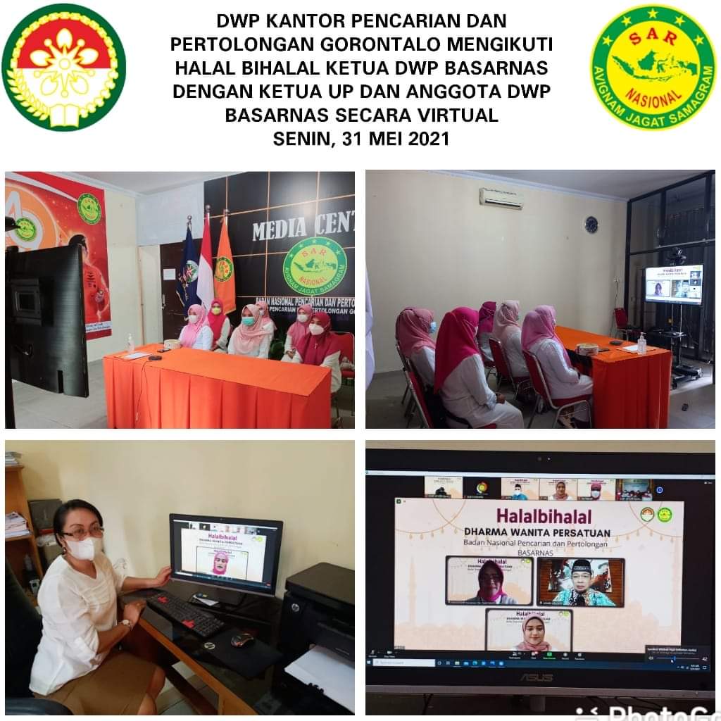 Senin, 31 Mei 2021 Kegiatan DWP Kantor Pencarian dan Pertolongan (BASARNAS) Gorontalo : Dharma Wanita Persatuan kantor Pencarian dan Pertolongan Gorontalo mengikuti Halal Bihalal Ketua DWP BASARNAS dengan Ketua UP dan Anggota DWP BASARNAS secara Virtual