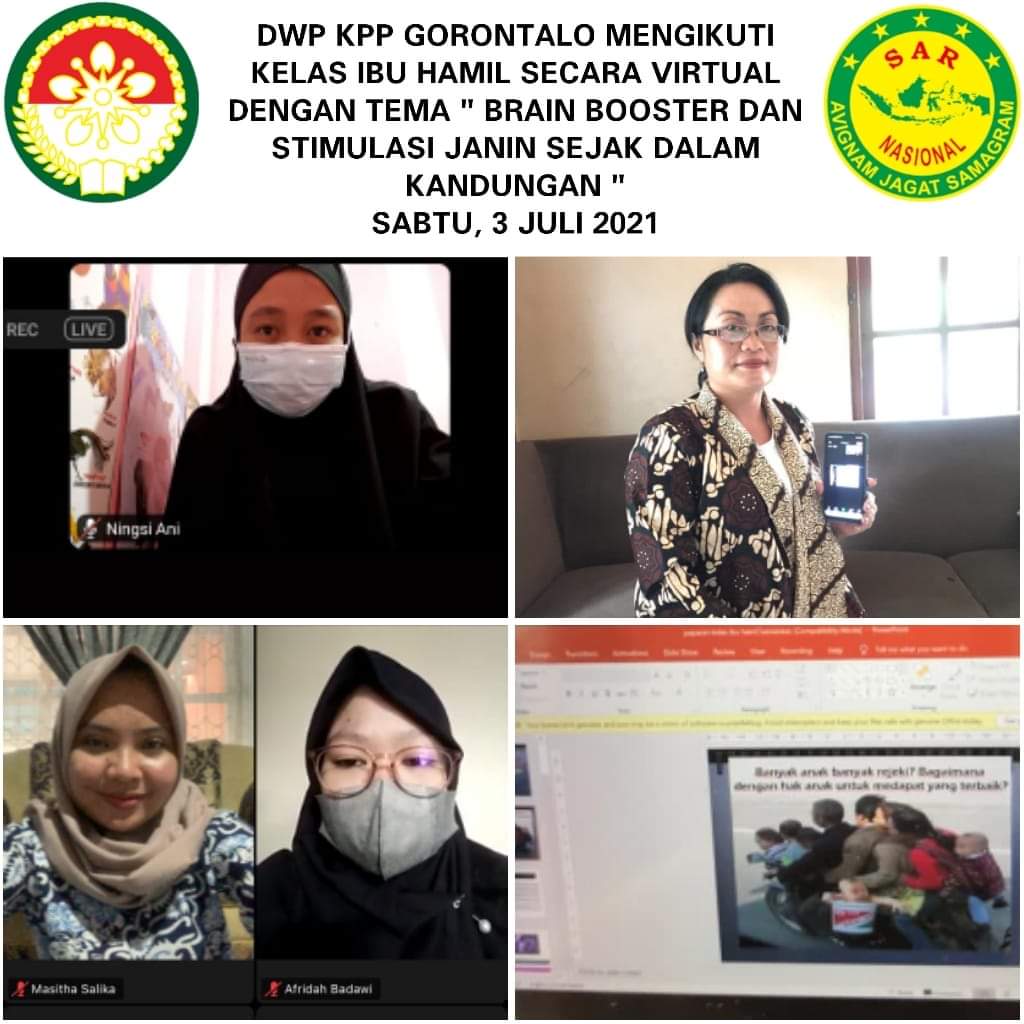 Sabtu, 3 Juli 2021 Kegiatan DWP KPP GORONTALO : Dharma Wanita Persatuan kantor Pencarian dan Pertolongan Gorontalo mengikuti Kelas Ibu Hamil secara Virtual dengan tema " Brain Booster dan Stimulasi Janin sejak dalam Kandungan.