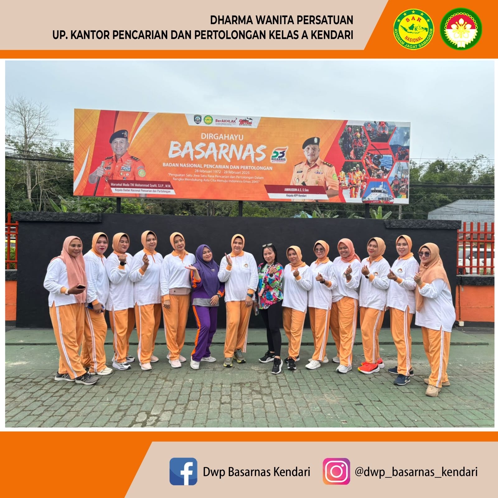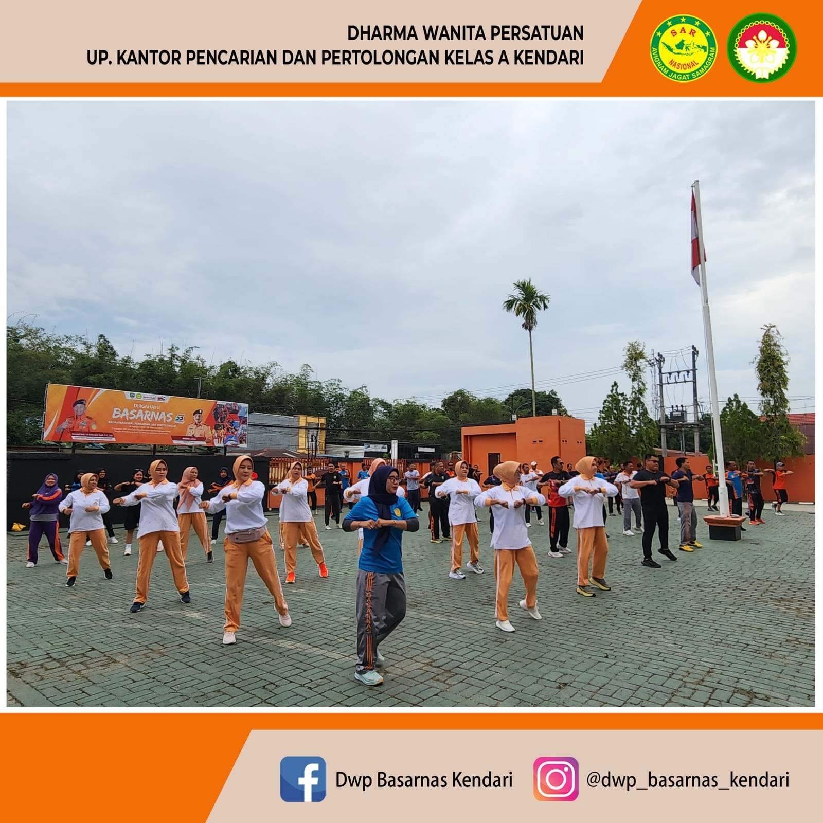 Jumat, 09 Mei Ketua DWP UP Kantor Pencarian Dan Pertolongan Kendari Ny.Yenny Sutisna Amiruddin beserta Anggota, turut serta dalam Mengikuti Olahraga Pagi Senam Bersama yang di Laksanakan di Halaman Kantor Basarnas Kendari