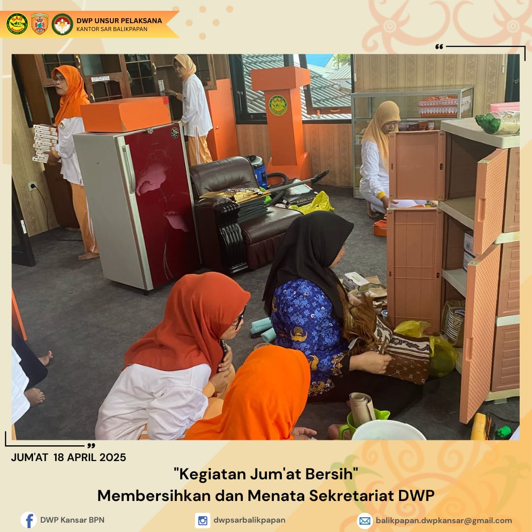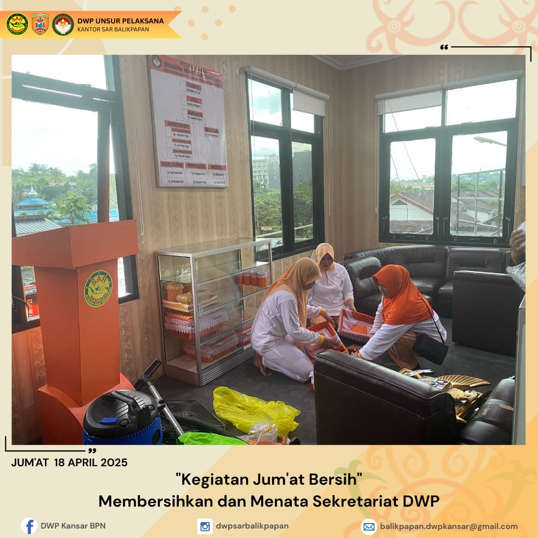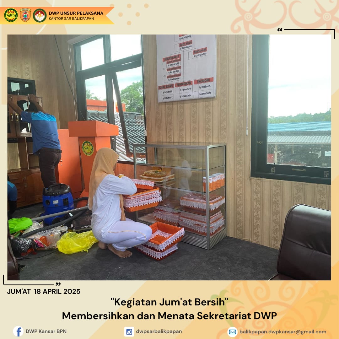Jumat, 18 April 2025 anggota DWP UP Kantor Pencarian dan Pertolongan Kelas A Balikpapan melaksanakan kegiatan Jum'at bersih "Membersihkan dan Menata Sekretaris DWP"