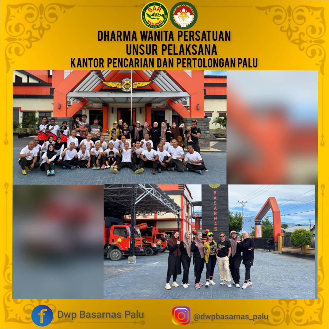 Giat. Jum'at 13 Juni 2025. Dharma Wanita Persatuan Unsur Pelaksana Kantor Pencarian dan Pertolongan Palu ikut serta dalam kegiatan Senam Pagi Bersama seluruh Pegawai dan PPNPN Kansar Palu. Bertempat di halaman Kantor Pencarian dan Pertolongan Palu
