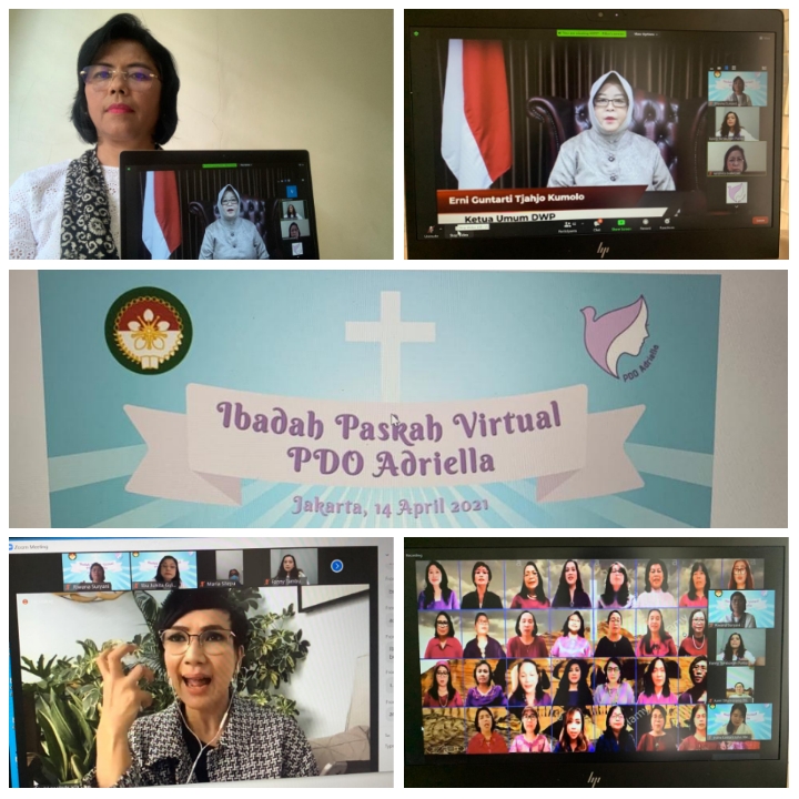 Pada tanggal 15 April 2021, Wakil Ketua 1 DWP Basarnas, Ny. Riwana Bangun, menghadiri perayaan Paskah yang diselenggarakan oleh DWP Pusat secara virtual melalui Zoom Meeting.
