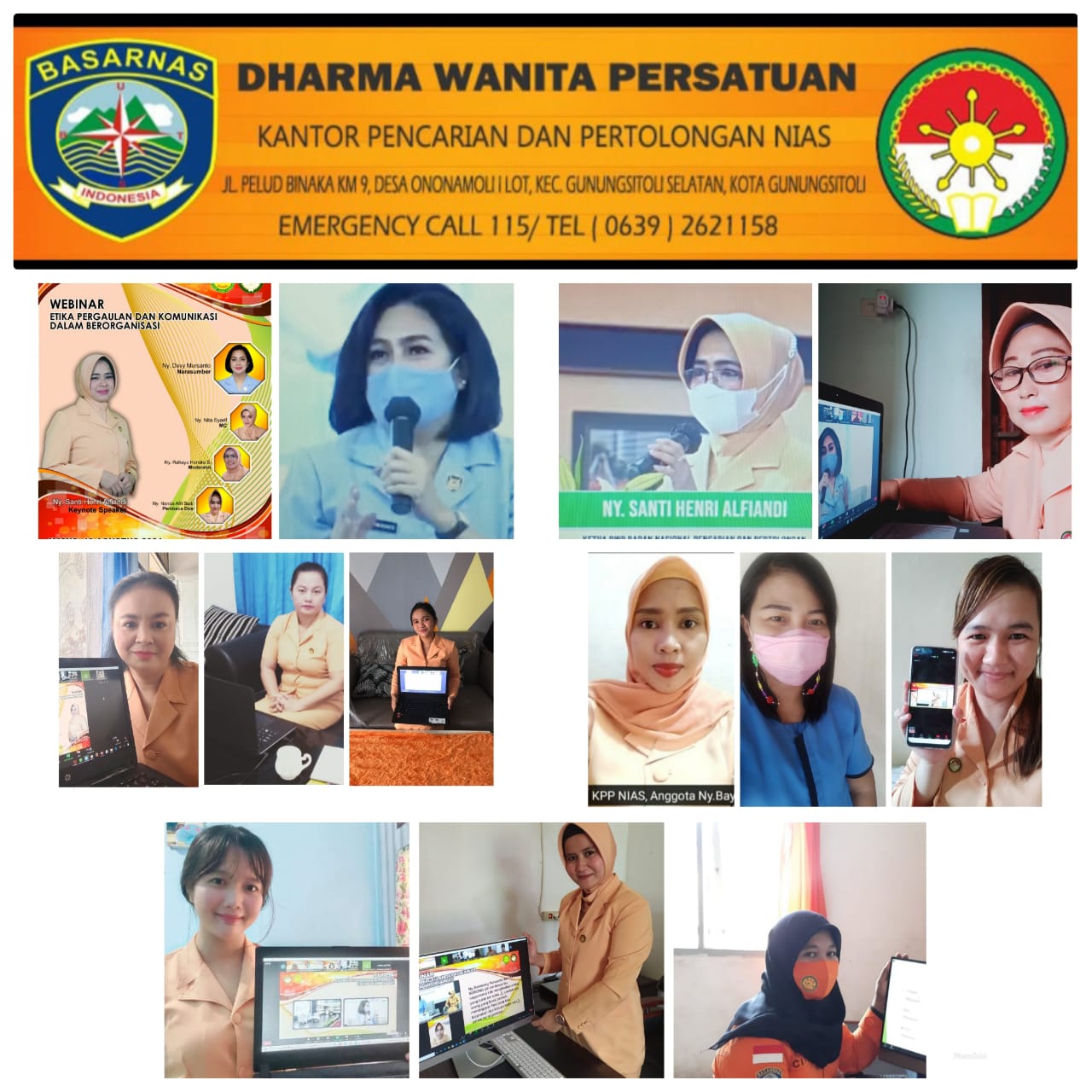 Pada tanggal 19 Agustus DWP UP KPP Nias, mengikuti webinar yang di selenggarakan oleh DWP Basarnas. Dengan tema : Etika Pergaulan dan Komunikasi dalam Organisasi . Narasumber : Ny. Devi Mursanto. Secara virtual melalui Aplikasi Zoom.