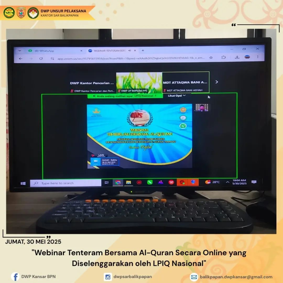 Jumat, 30 Mei 2025 Ny. Febriyani Nur Ngalim mengikuti webinar "Tentram Bersama Al-Quran" yang diselenggarakan LPIQ Nasional