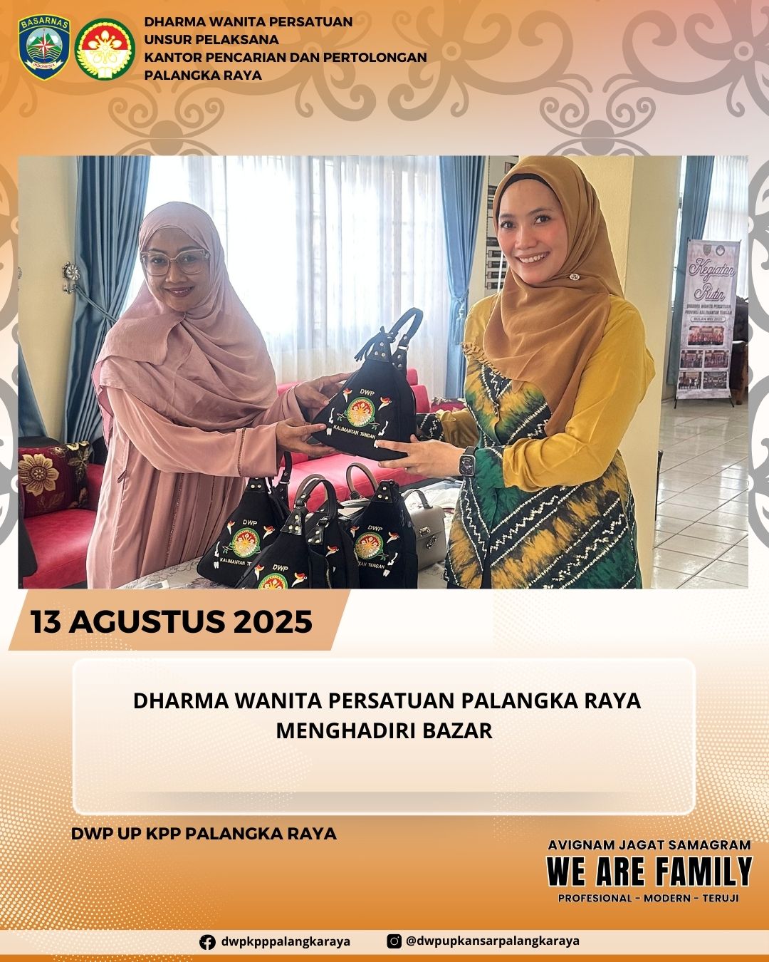 Pengurus Dharma Wanita Persatuan Unsur Pelaksanaan Kantor Pencarian dan Pertolongan Palangka Raya mendukung bazar jualan produk-produk Dharma Wanita Persatuan Provinsi Kalimantan Tengah.
