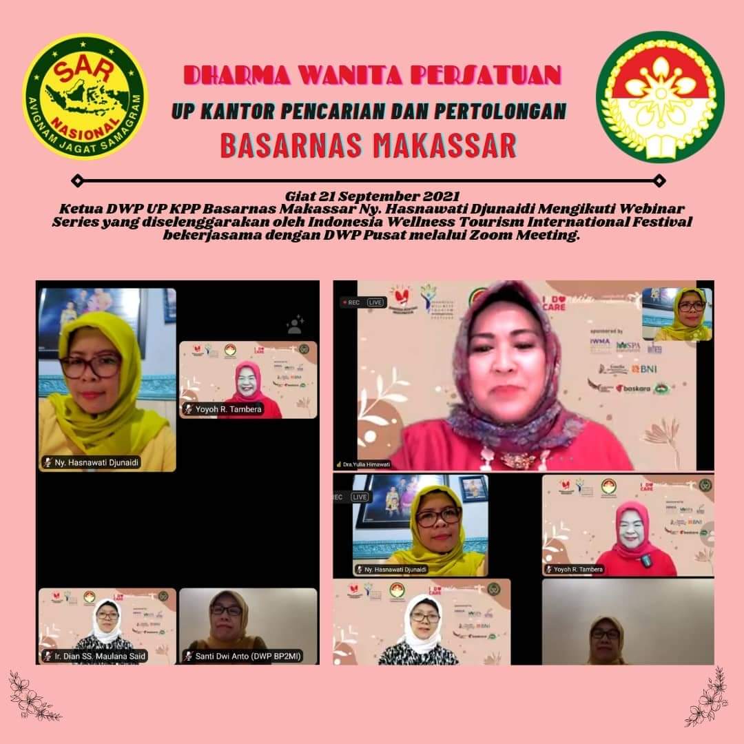Ketua DWP UP KPP Basarnas Makassar Ny. Hasnawati Djunaidi Mengikuti Webinar Series yang diselenggarakan oleh Indonesia Wellness Tourism International Festival bekerjasama dengan DWP Pusat melalui Zoom Meeting. Topik: Pelatihan Membuat Body Mist Healing Aromatherapy