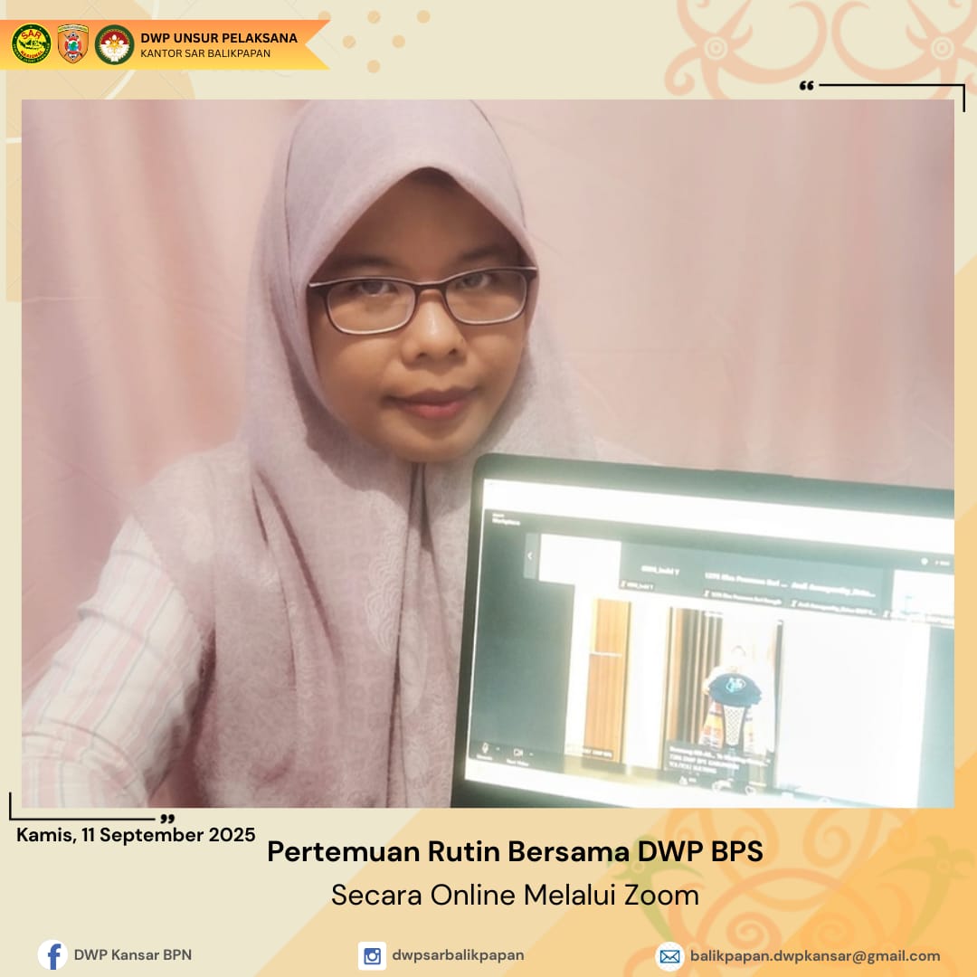 Kamis, 11 September 2025, Ny. Febriyani Nur Ngalim mewakili DWP UP Kantor Pencarian dan Pertolongan Balikpapan pada pertemuan rutin bersama DWP BPS. Pertemuan ini diisi dengan seminar online melalui zoom meeting dengan tema "Rahasia Belanja Bijak: Membedakan Kebutuhan dan Keinginan". Seminar ini bertujuan memberikan wawasan kepada peserta tentang cara mengelola keuangan dengan bijak dalam memenuhi kebutuhan dan mengontrol keinginan. Melalui kegiatan ini diharapkan peserta dapat memperoleh pengetahuan dan keterampilan untuk membuat keputusan keuangan yang lebih tepat dan efektif dalam kehidupan sehari-hari