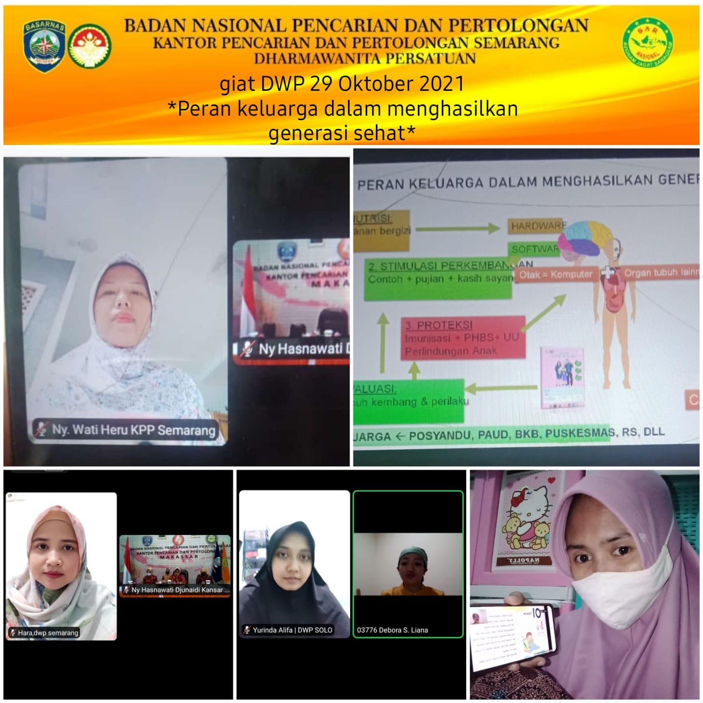 Jum'at. 29 Oktober 2021. DWP UP Semarang mengikuti webinar Kelas Ibu Balita Tema Penberian Pertolongan Pertama Pada Anak, sejauh mana orang tua dapat mengobati anak sakit? Fasilitator dr Debora shinta Liana Sp. A