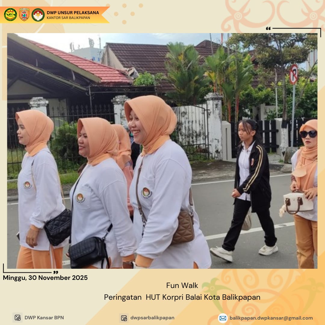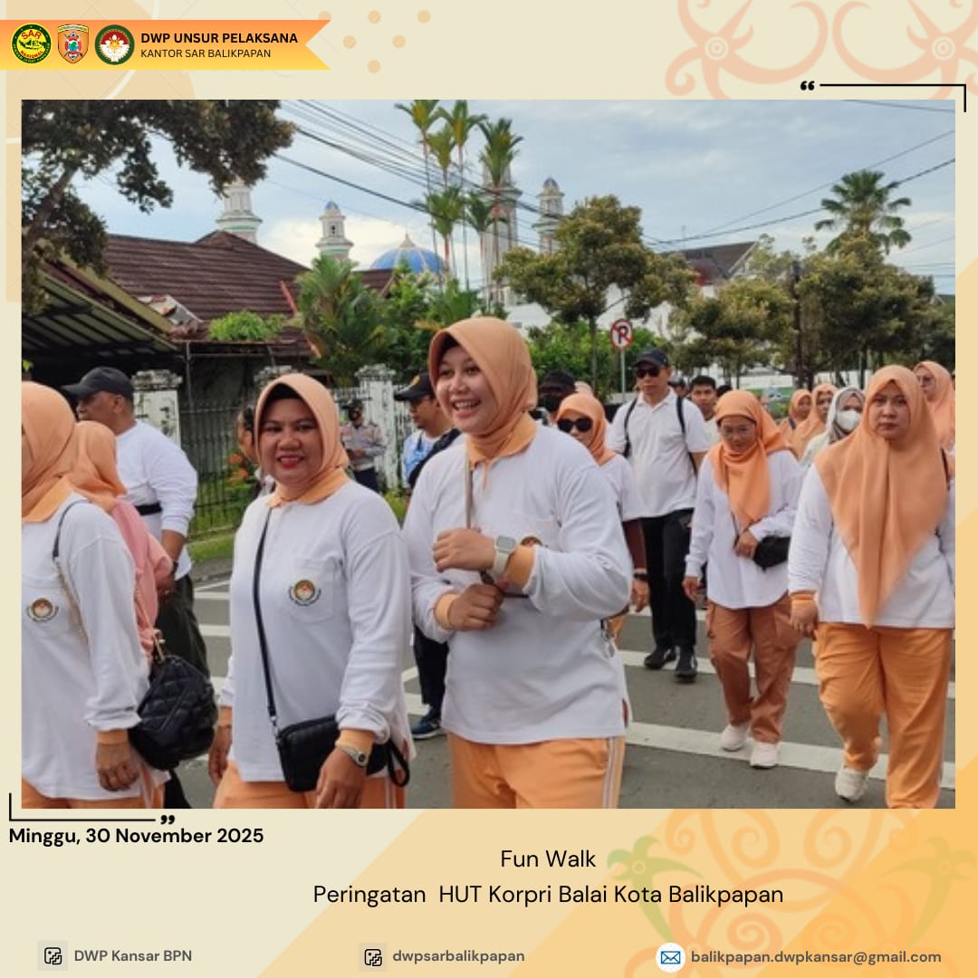 Minggu 30 November 2025, DWP UP KPP Balikpapan mengikuti kegiatan Senam Sehat dan Fun Walkdalam rangka memperingati Hari Ulang Tahun KORPRI ke- 54. Kegiatan ini bertujuan untuk meningkatkan kesehatan dan kebersamaan antar anggota DWP dan pegawai di lingkungan Pemerintah Kota Balikpapan. Dengan semangat dan antusiasme, para peserta mengikuti senam sehat dan fun walk yang diadakan di halaman Balai Kota Balikpapan, menciptakan suasana yang meriah dan penuh kegembiraan