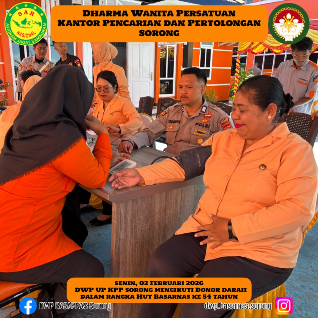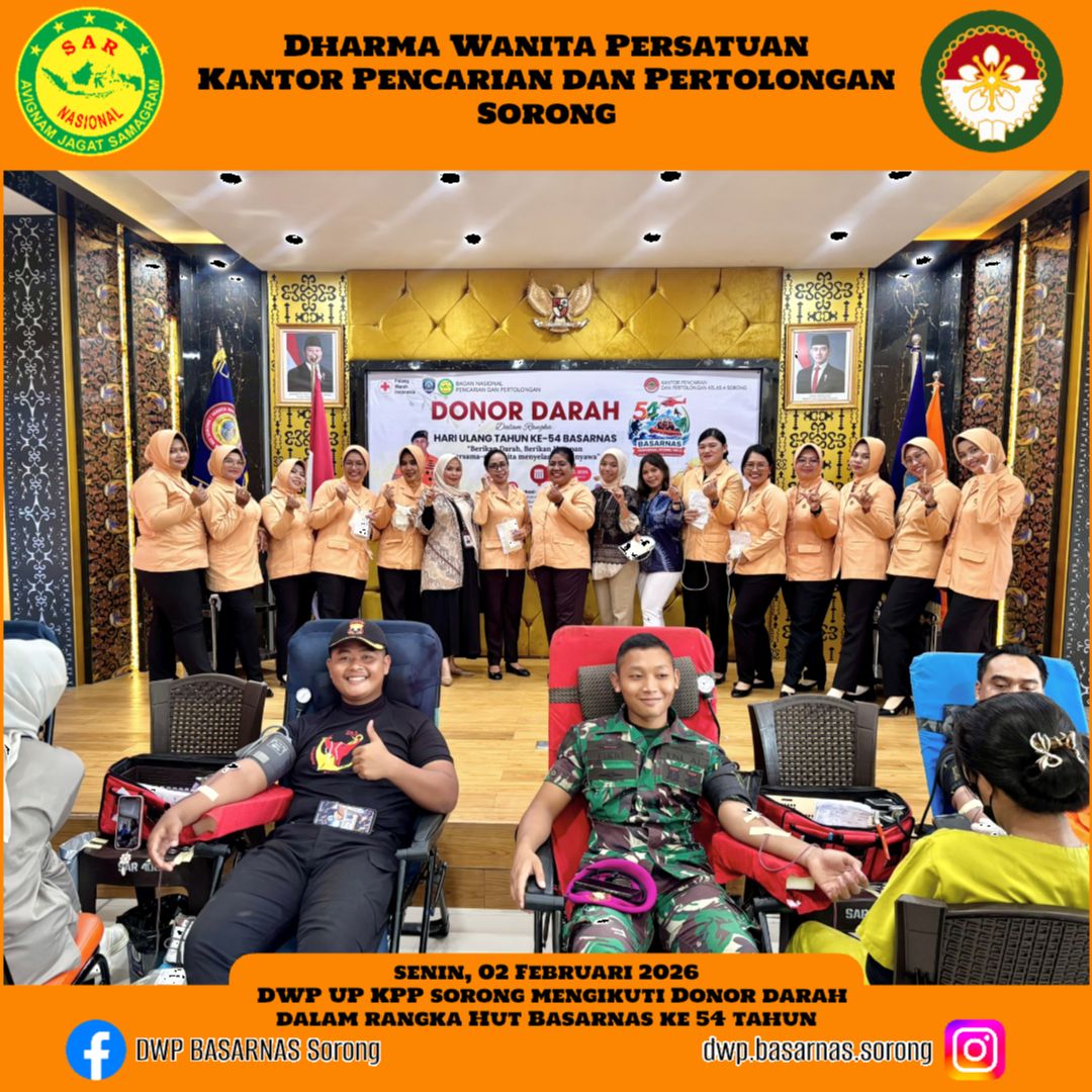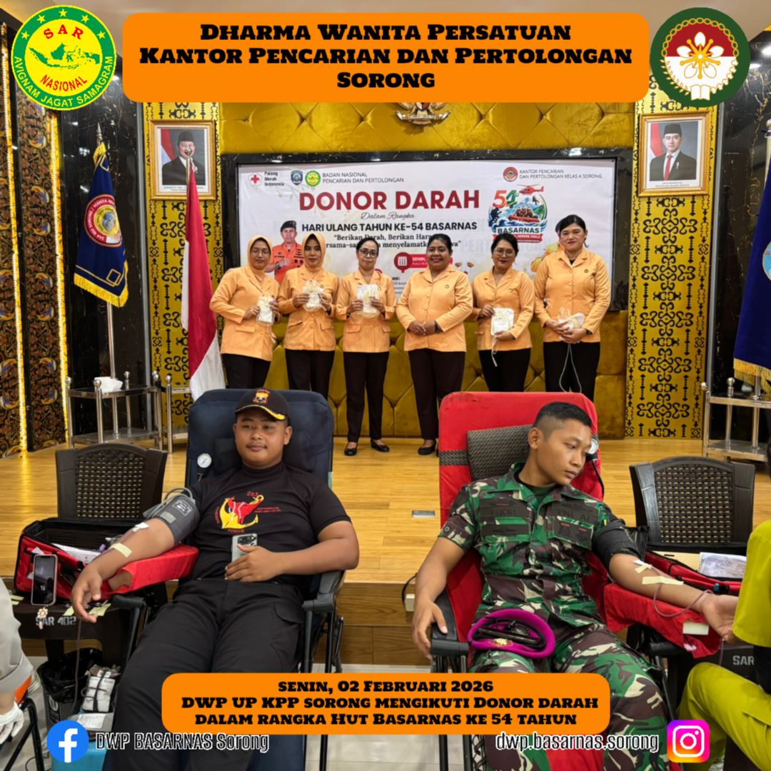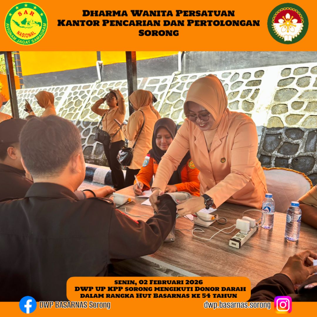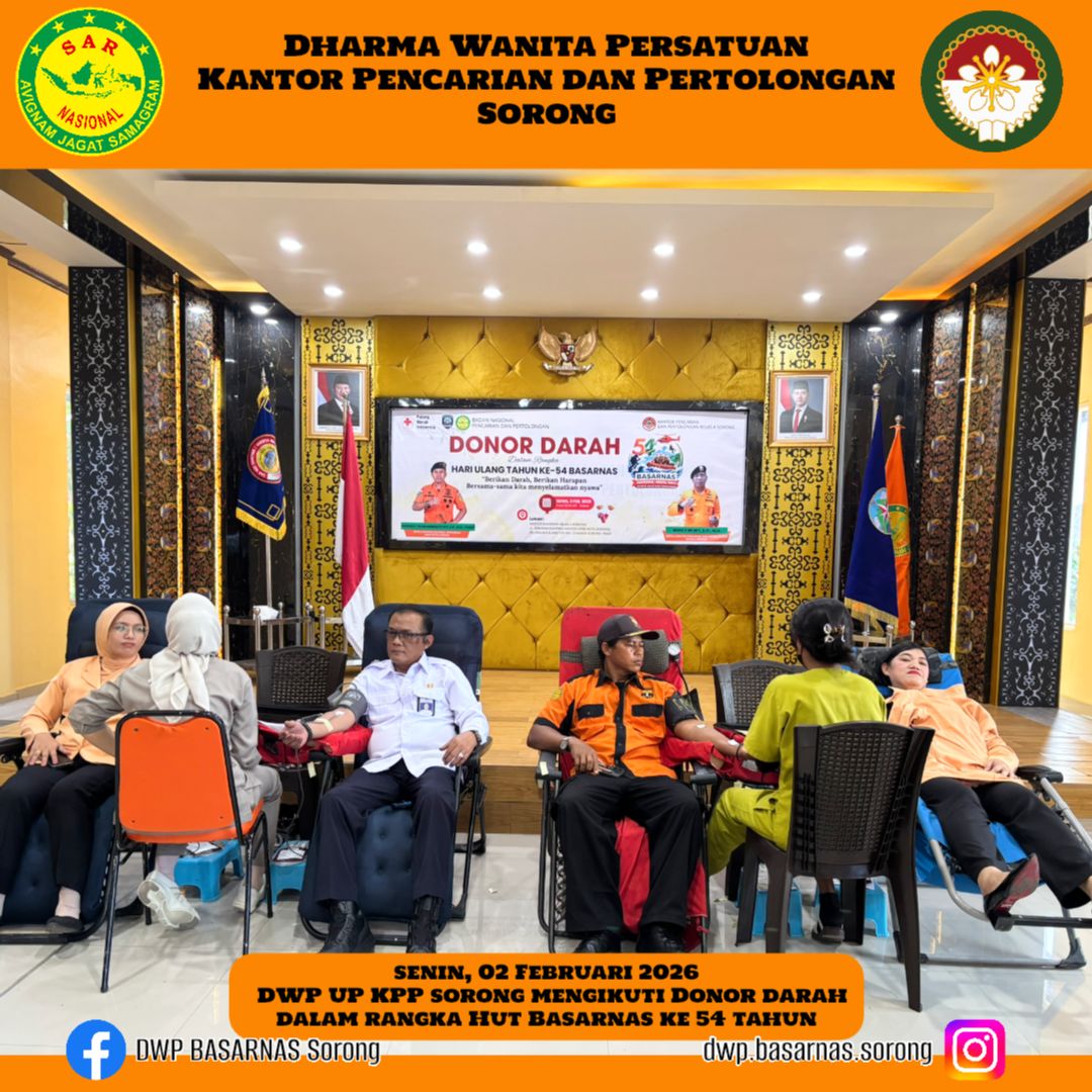 Senin, 02 Februari 2026 DWP UP KPP Sorong mengikuti dan turut berpartisipasi dalam Kegiatan Donor darah dalam rangka HUT BASARNAS KE-54 tahun.