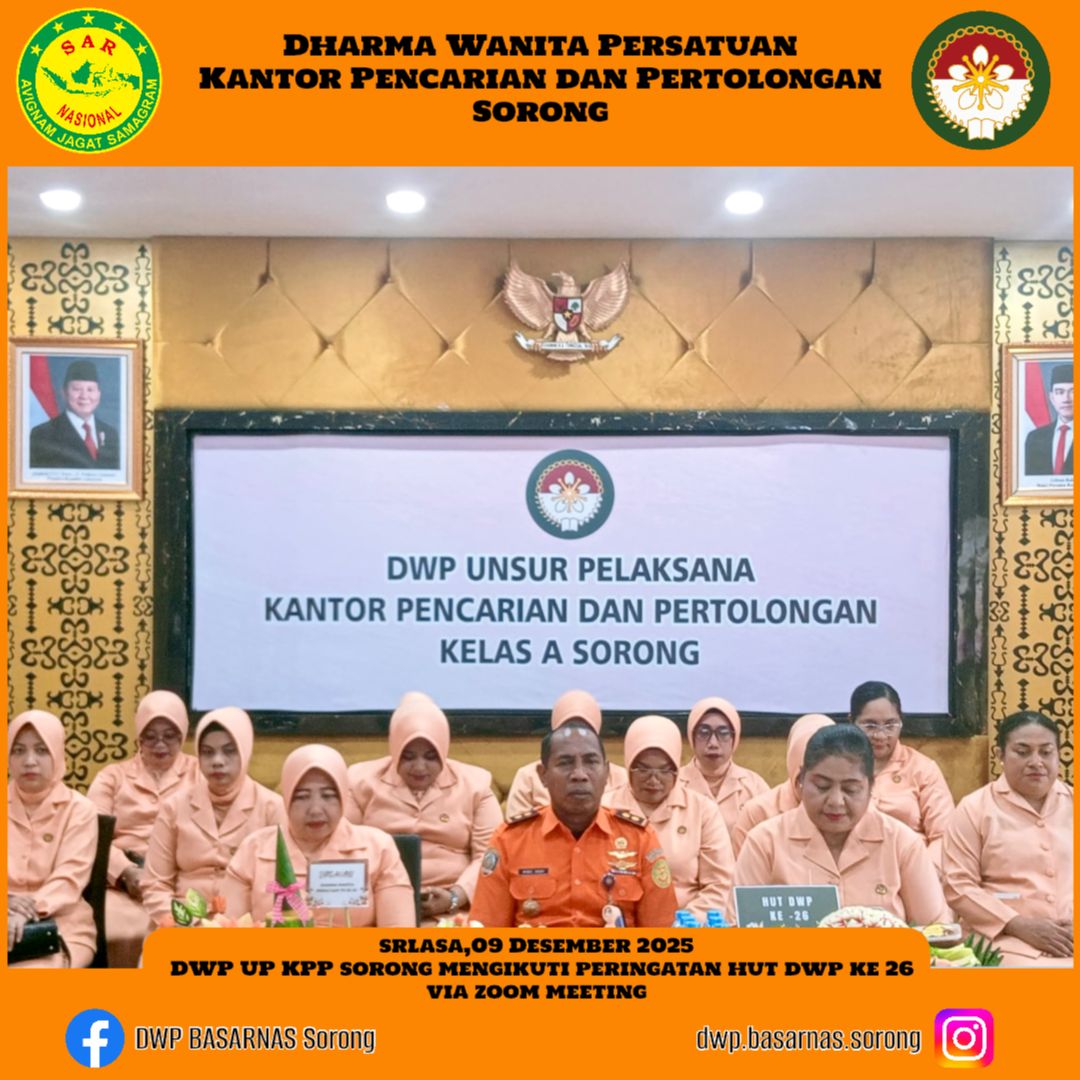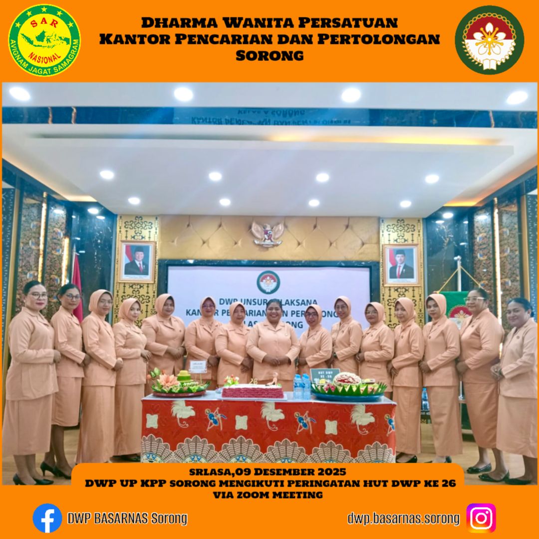 Selasa, 09 Desember 2025 DWP UP KPP Sorong mengikuti Peringatan HUT DWP ke- 26 di jajaran Dharma Wanita Pesatuan Badan Nasional Pencarian dan Pertolongan yg rangkaikan dgn sosialisasi breast aware ( diteksi dini kanker payudara ) yang di laksanakan secara online yang di ikuti oleh DWP UP KPP se -indonesia.