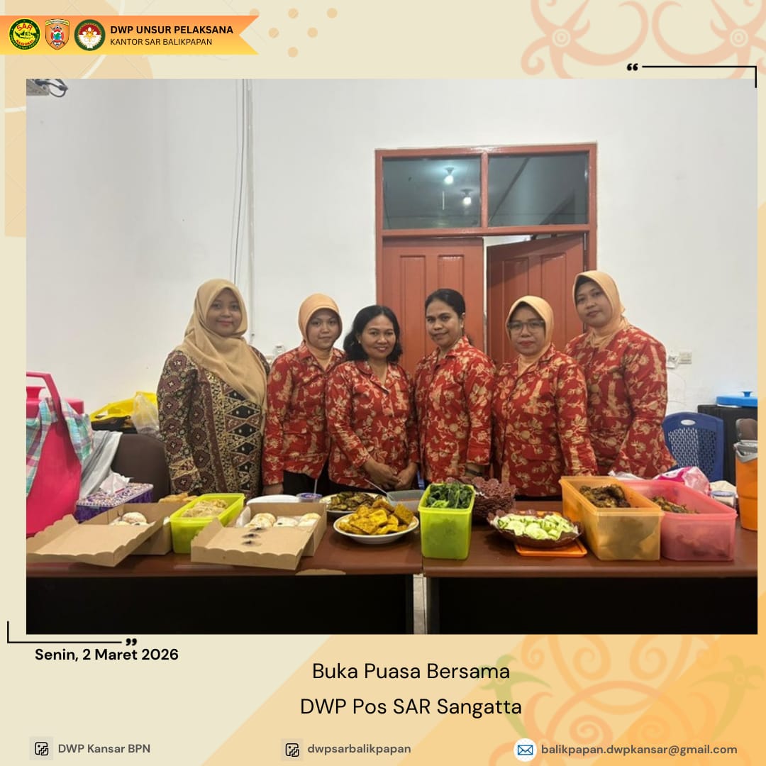Senin, 2 Maret 2026 DWP UP Kantor Pencarian dan Pertolongan Balikpapan Pos Pencarian dan Pertolongan Sangatta melaksanakan buka puasa bersama di Pos Pencarian dan Pertolongan Sangatta. Acara ini dilaksanakan dalam rangka tasyakuran memperingati HUT Ke- 54 Badan Nasional Pencarian dan Pertolongan. Diharapkan acara ini dapat dirasakan juga oleh pegawai yang berada di Pos Pencarian dan Pertolongan. Dengan semangat kebersamaan dan satu jiwa satu rasa seluruh pegawai Kantor Pencarian dan Pertolongan Balikpapan merayakan HUT Ke- 54 Badan Nasional Pencarian dan Pertolongan dengan penuh kebahagiaan. Profesional, modern, teruji. Avignam Jagad Samagram