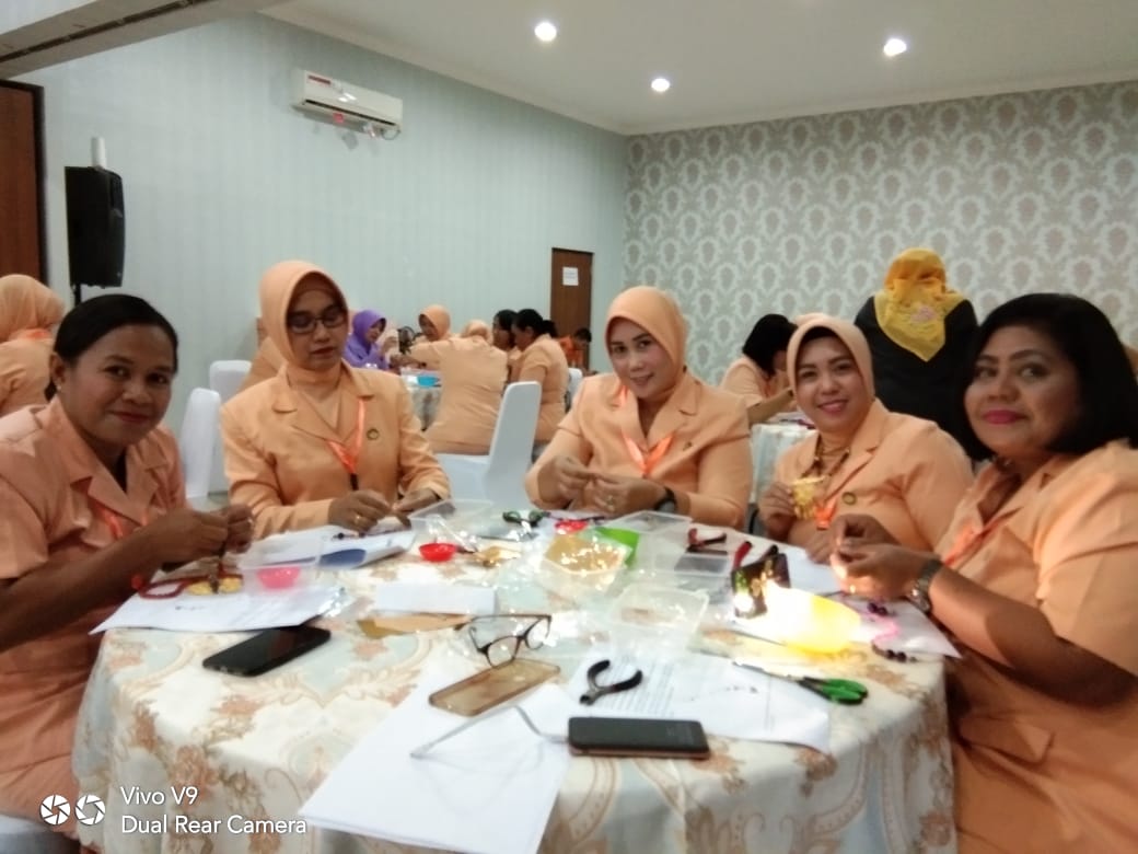 Pada Hari Selasa, tanggal 11 Februari 2020, Ketua UP DWP KPP Banjarmasin bersama para Ketua DWP UP seluruh Indonesia mengikuti rangkaian kegiatan Raker Hari ke-2 berkunjung ke Griya Garini berlatih membuat Kalung etnik di LKP Keterampilan Rumah Kahyuna Halim.