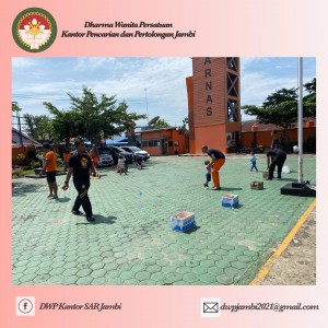 Minggu, 27 Februari 2022 DWP KPP Jambi mengadakan rangkaian kegiatan perlombaan HUT ke-50 BASARNAS. Ketua, Wakil Ketua, Pengurus serta anggota DWP KPP Jambi mengikuti rangkaian kegiatan perlombaan dan diadakan juga lomba bagi anak-anak, kegiatan tersebut laksanakan di Lapangan kantor pencarian dan pertolongan Jambi. diikuti 22 anggota DWP.