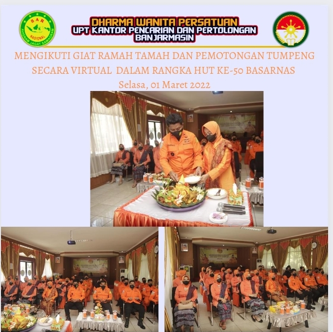 Selasa, 01 Maret 2022 Dharma Wanita Unsur Pelaksana Banjarmasin Mengikuti Giat Ramah Tamah dan Pemotongan Tumpeng yang dilaksanakan Secara Virtual dengan BASARNAS Pusat dalam Rangka HUT ke 50 BASARNAS